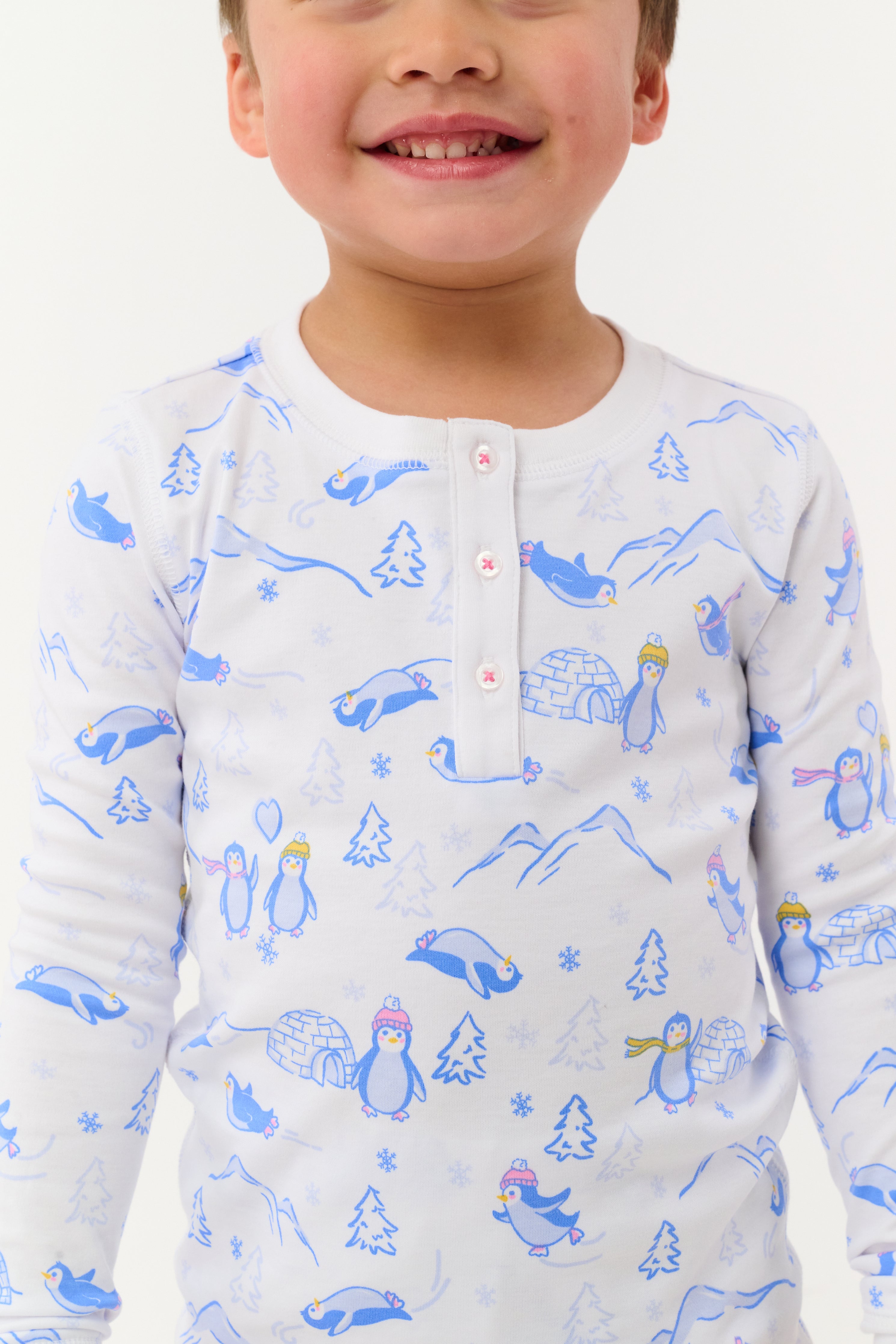 Welcome to the Penguin Party! Your little chicks will look adorable in our latest PJ print, a sweet blue design featuring penguins frolicking on the ice. As always, the two-piece PJ set is made with our signature dreamy-soft Pima cotton for sweet dreams night after night.