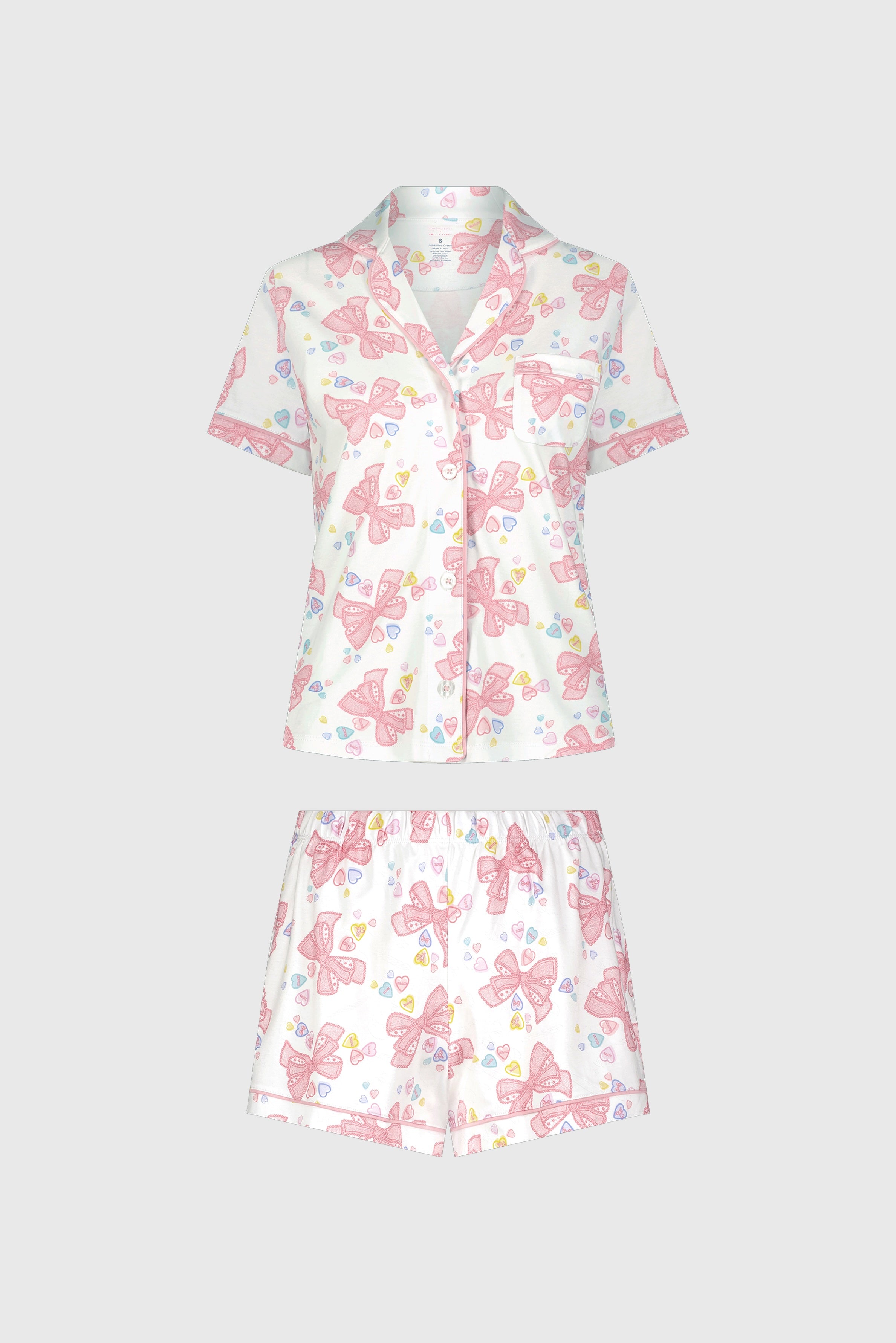 When it comes to spring PJs, think pink in the Doily Beaux Women's Polo Pajamas, our short-sleeved shortie PJs in super-soft Pima cotton. The pastel bow print simply couldn't be sweeter.