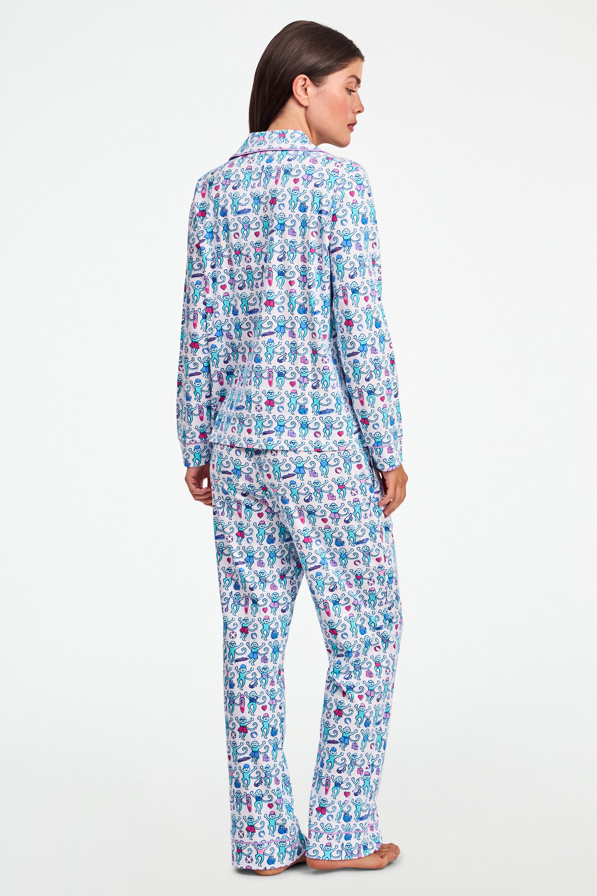 Give yourself permission to monkey around at bedtime in these comfy PJs that feature our playful monkey print. This pajama set includes a long-sleeve polo top and matching bottoms.