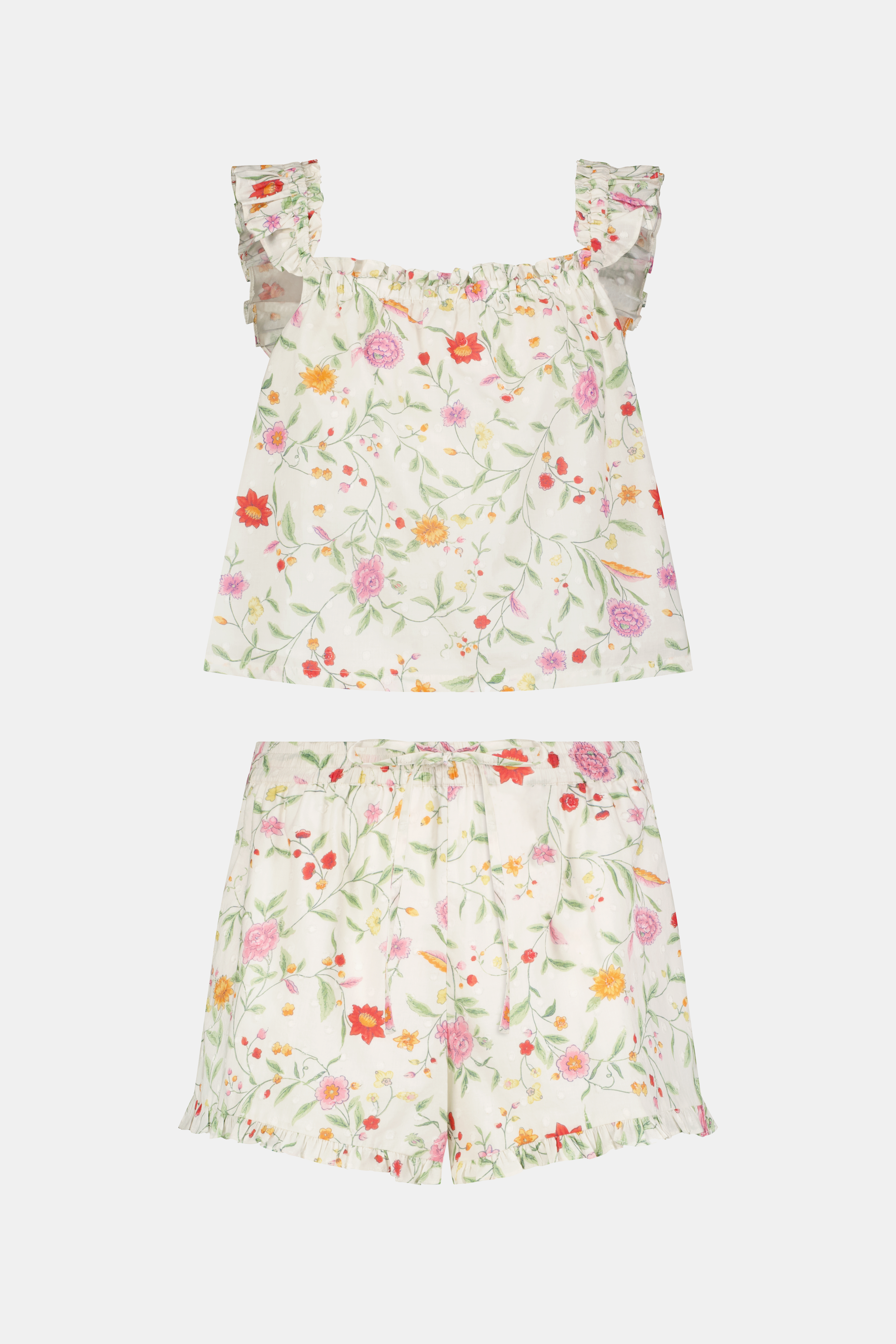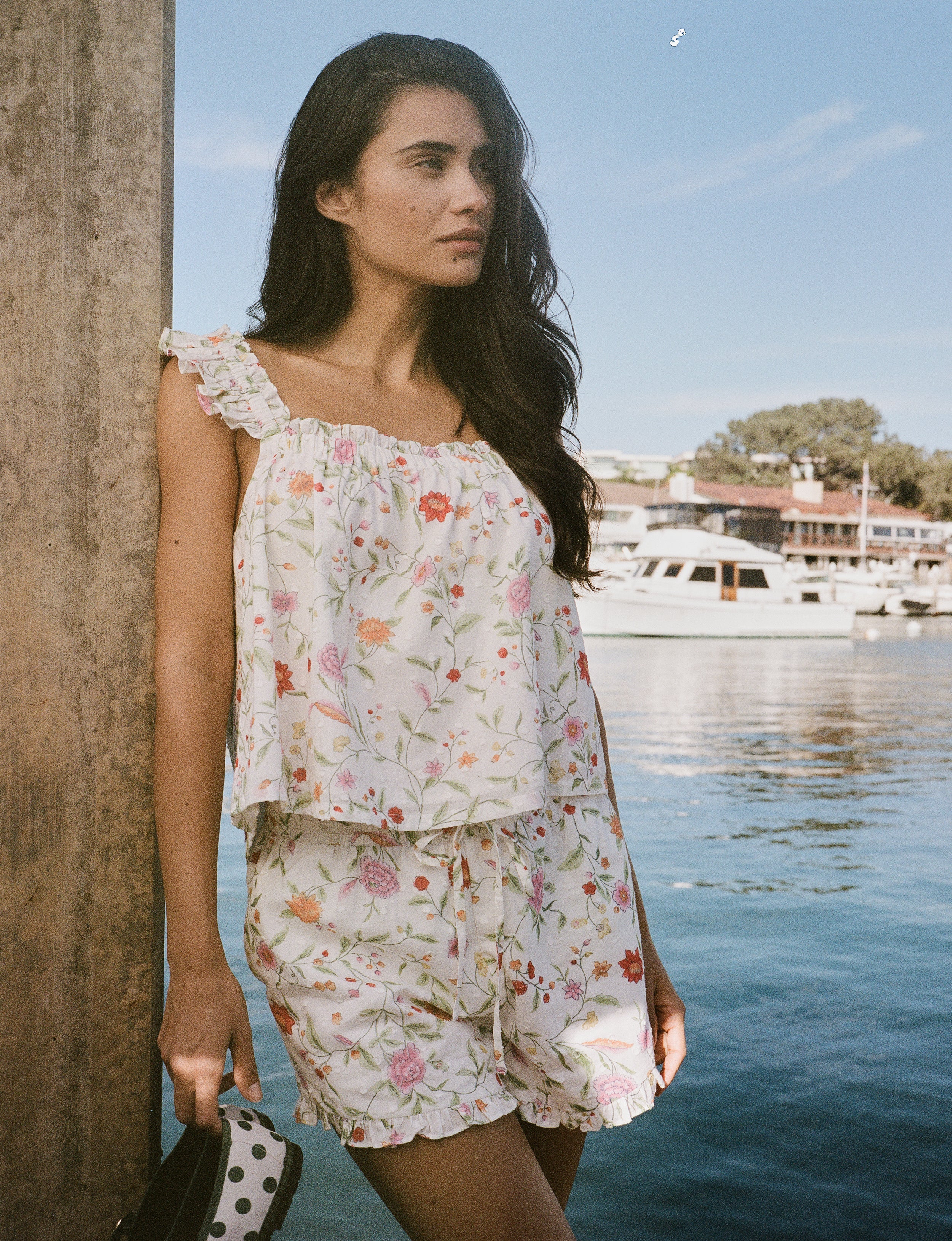 With its delicately ruffled straps, flouncy shorts, and painterly floral print, the Saylor Lounge Set is the prettiest way to relax. The two-piece set is meant for elevated lounging, whether that's in the backyard with a book or a lazy Sunday in bed.