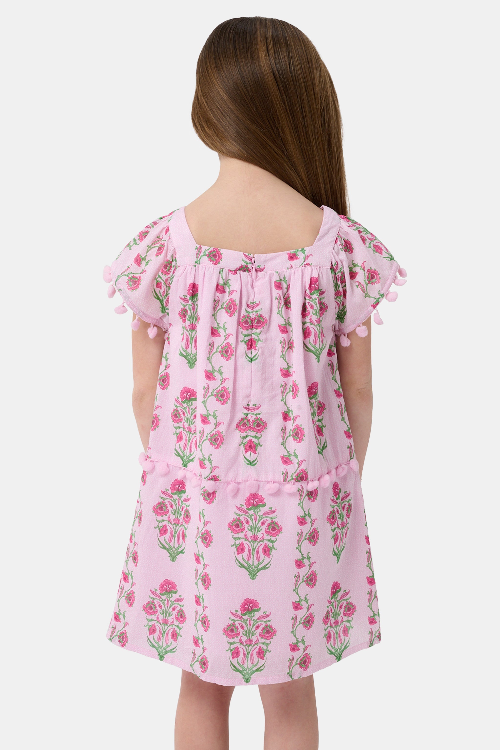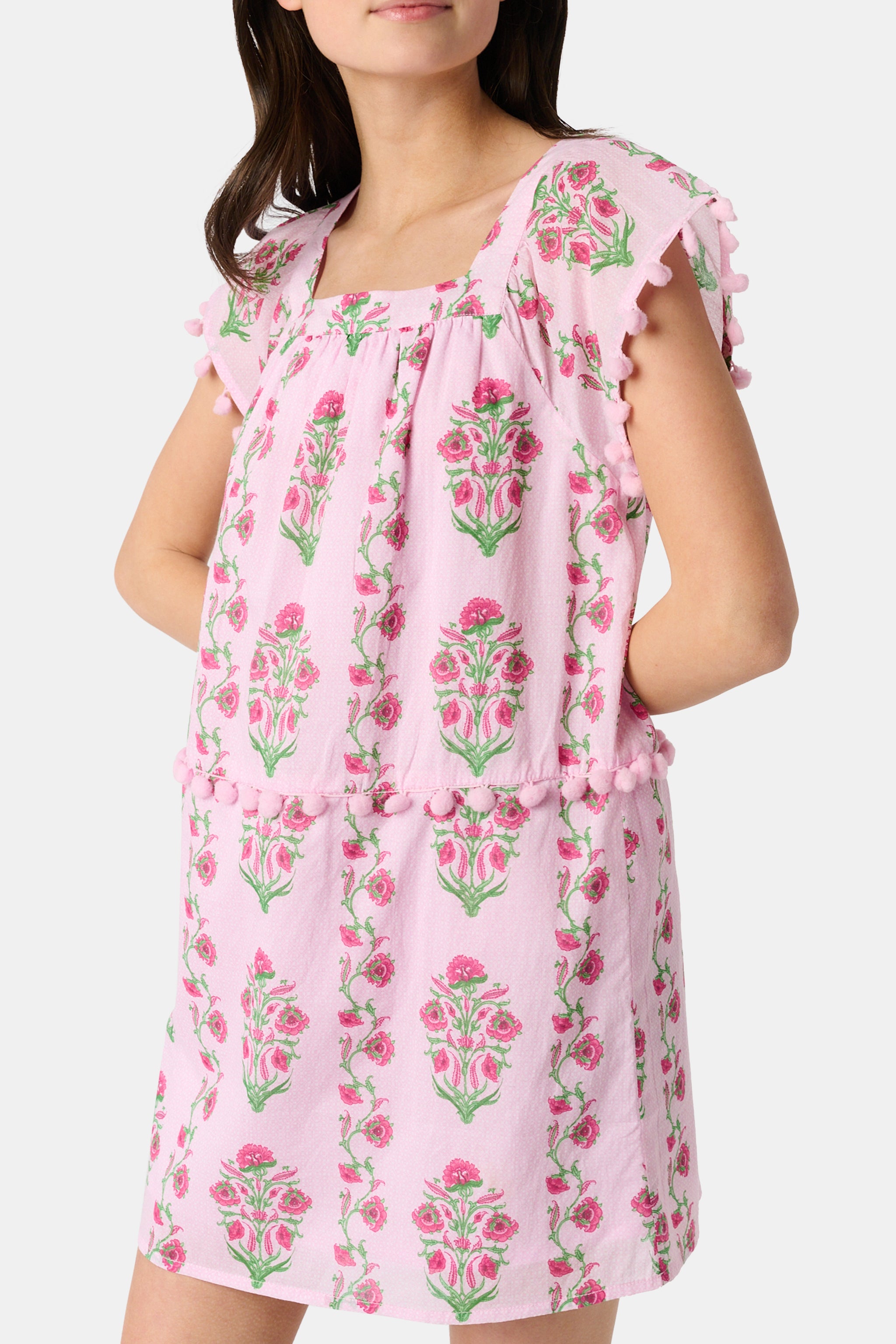 She'll be the definition of pretty in pink in this sweet summer sundress, a pullover style with ruffled cap sleeves and a loose, easy fit. Dress it up for summer weddings with Mary Janes or down with sneakers or sandals for a playdate.