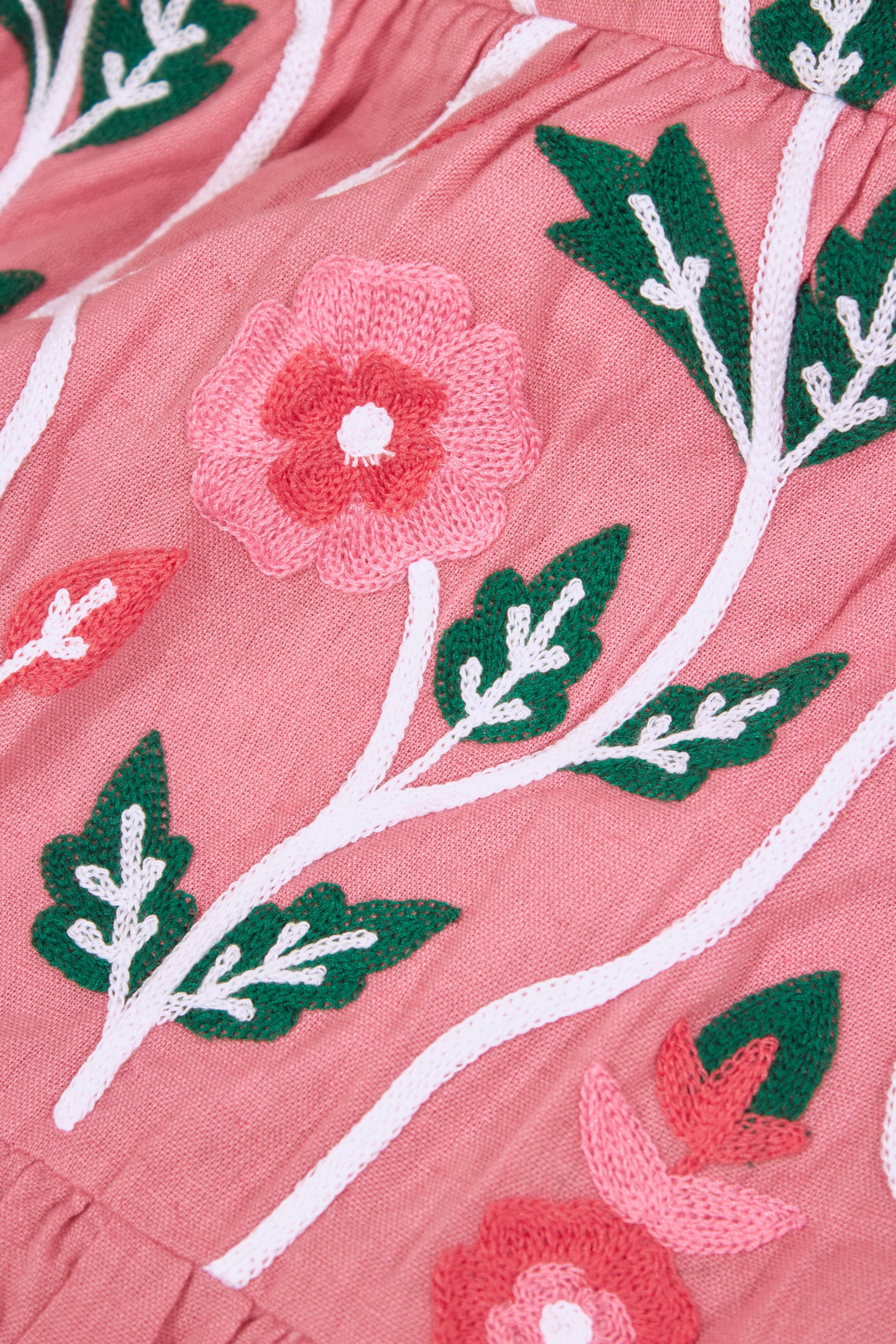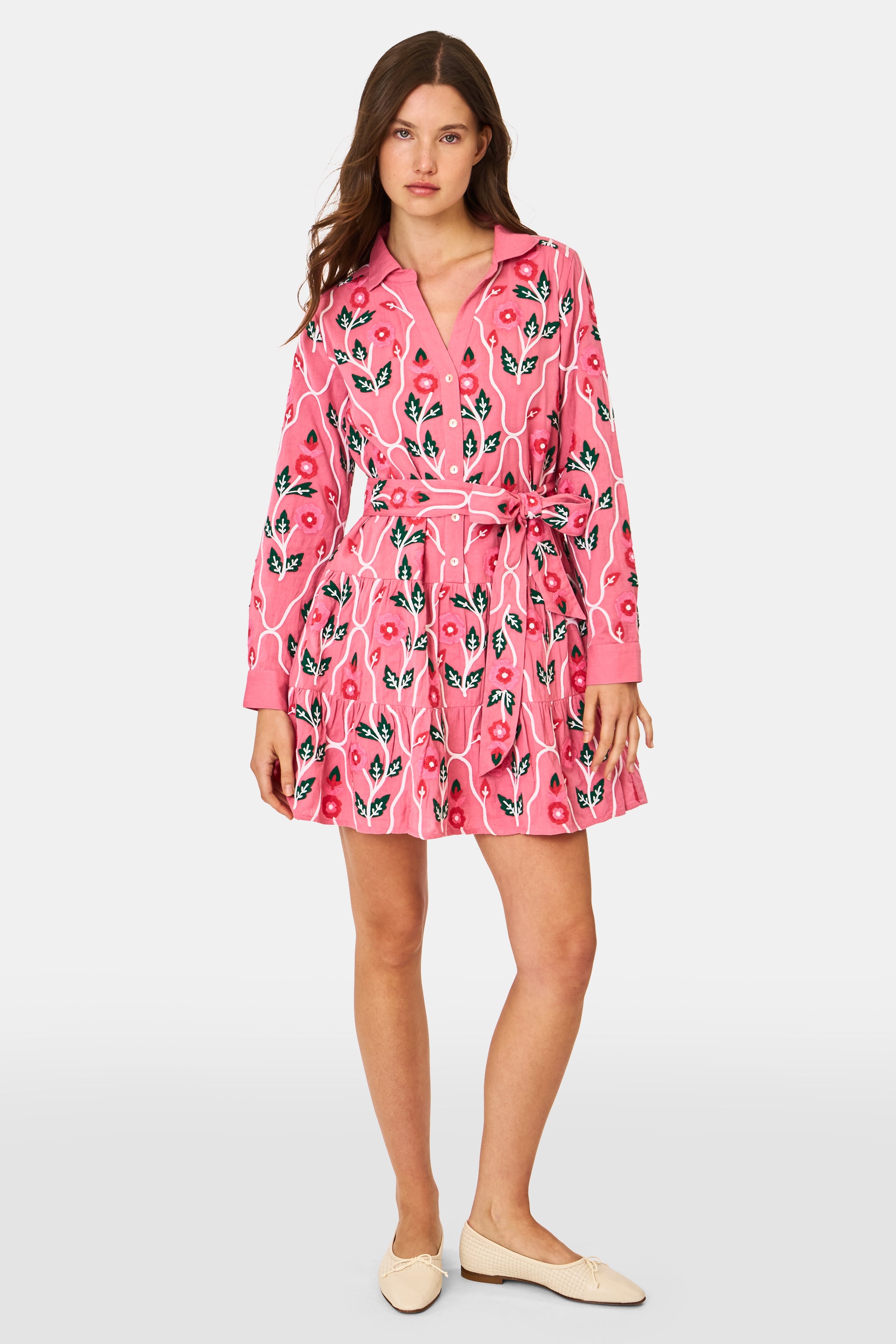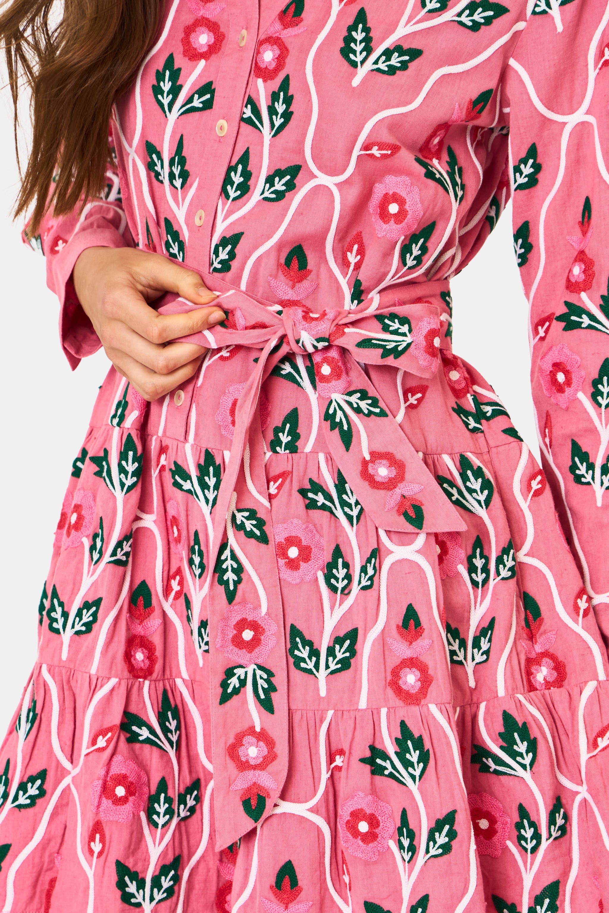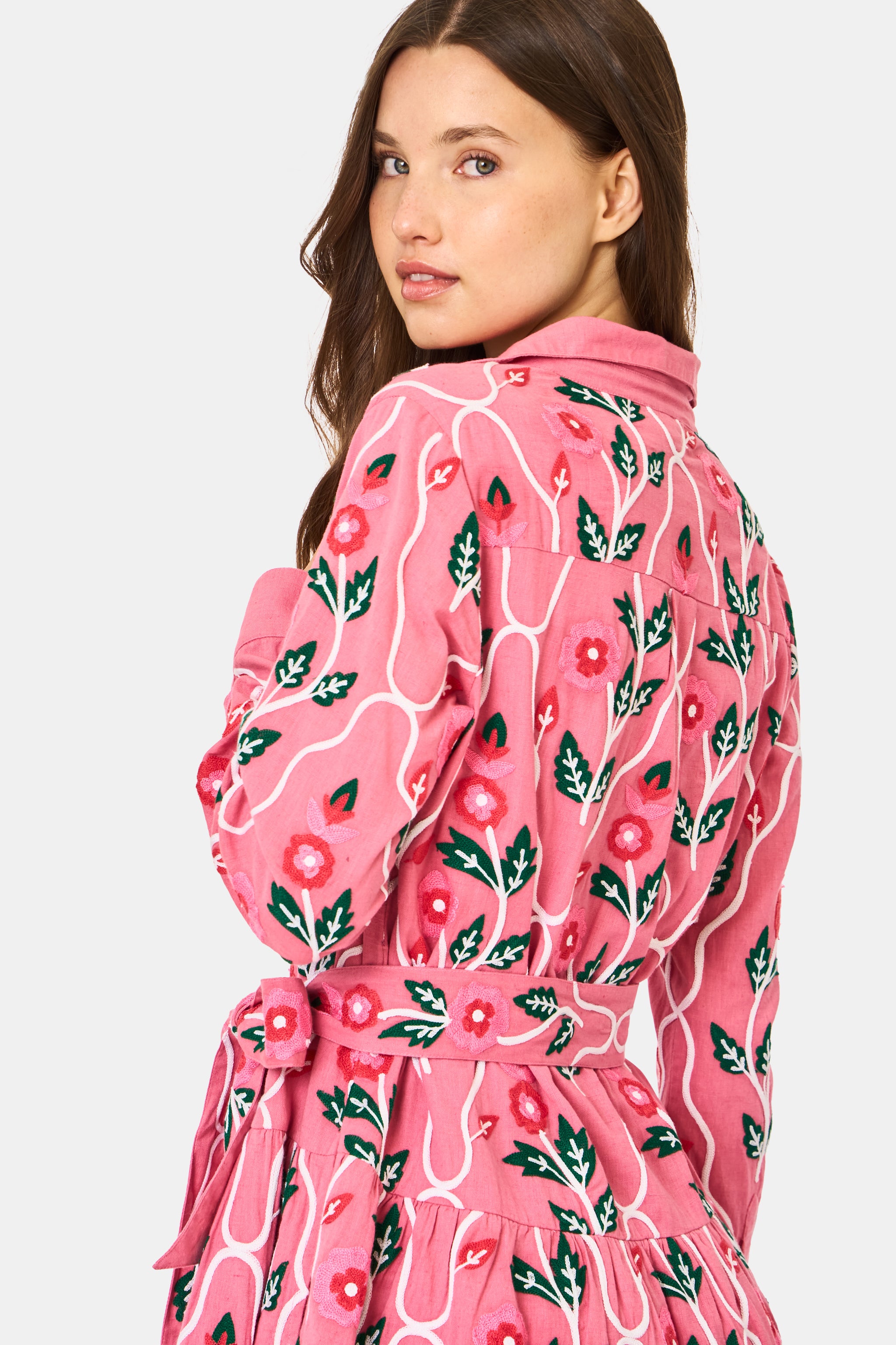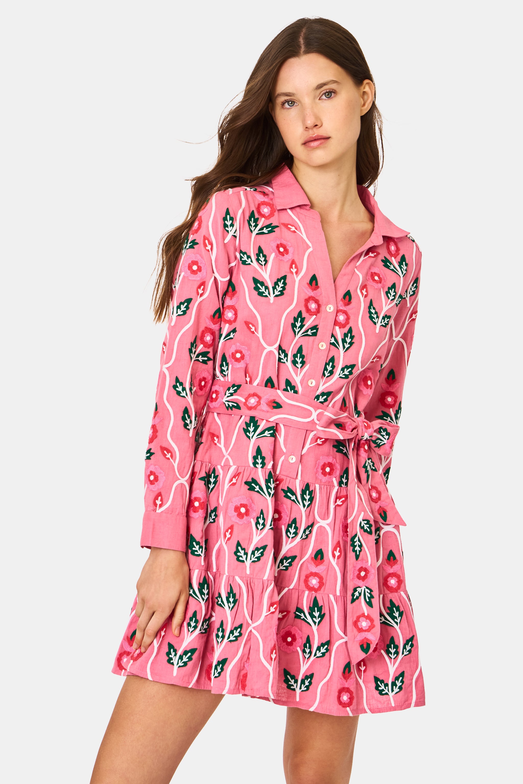 Go from warm summer days to crisp fall afternoons in the Emory Dress. It's half shirtdress, half flirty miniskirt, so you can wear it anywhere and everywhere. The cotton-flax fabric is cool and breathable, and the pink Trellis Floral print is the ideal amount of dressed-up.