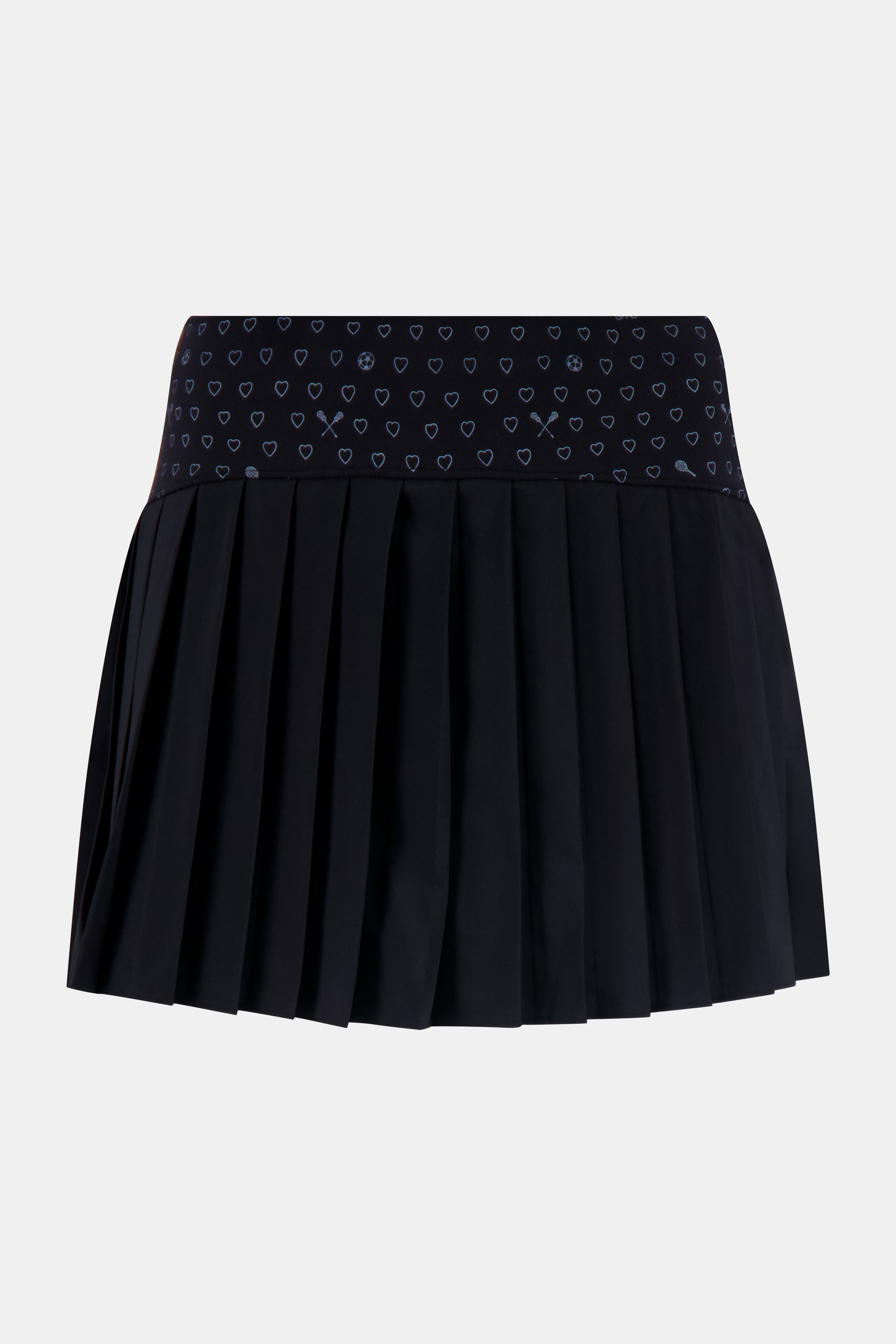The score is love-love-love. The Sabine Tennis Skirt is a pleated, chic black mini with a heart-print waistband. It's perfect for a weeknight pickleball game or playing doubles with your BFF.
