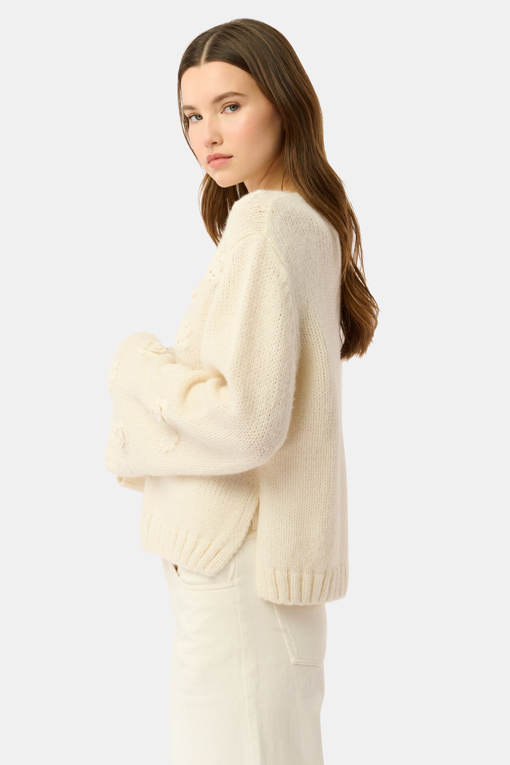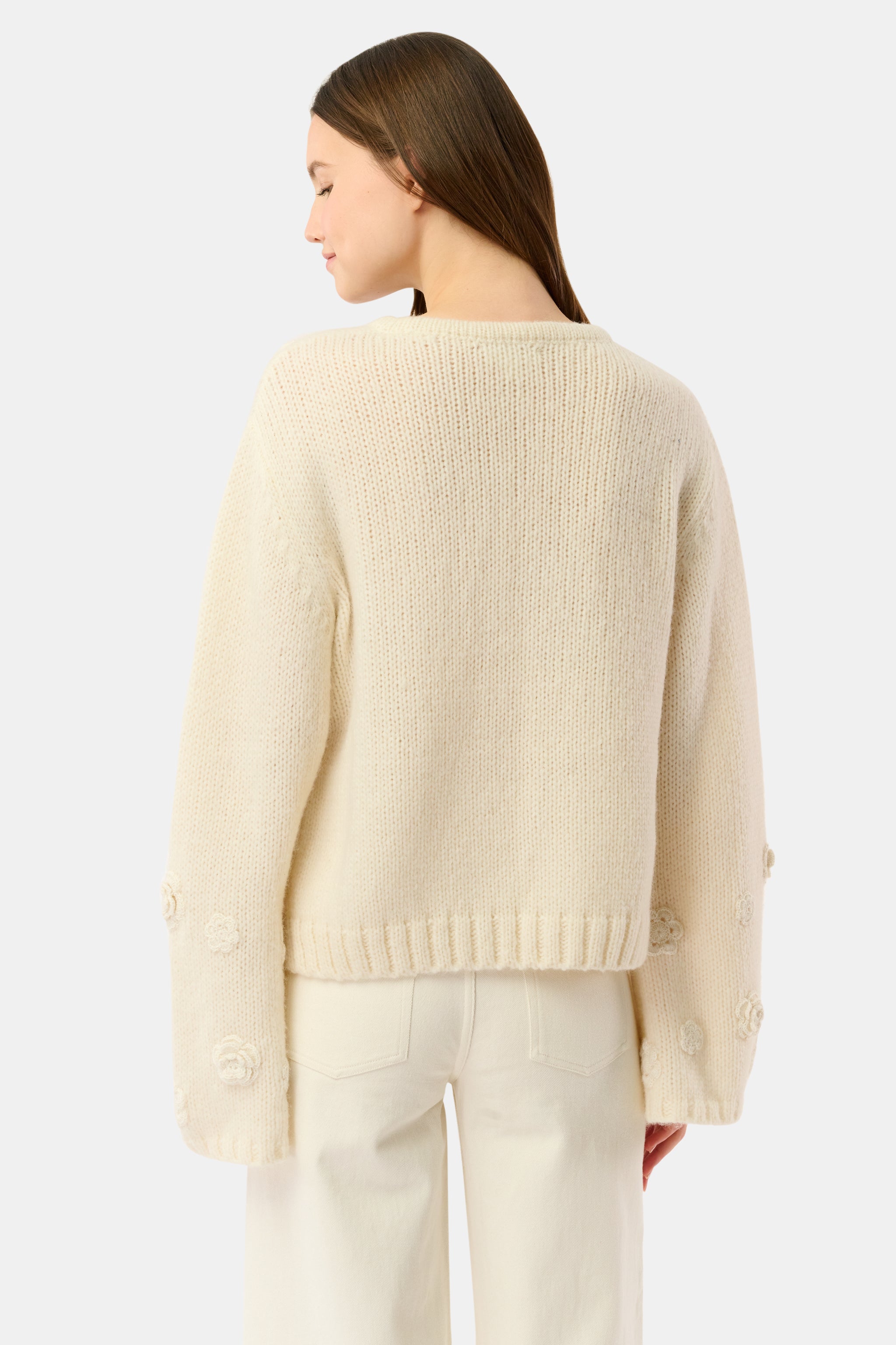 Add a little boho, a lot of delicate beauty to your winter and spring looks in our Quinn Sweater, a cream pullover style with crochet floral details at the neckline and sleeves. It's super cute with your go-to casual outfits, or paired atop a floral dress.