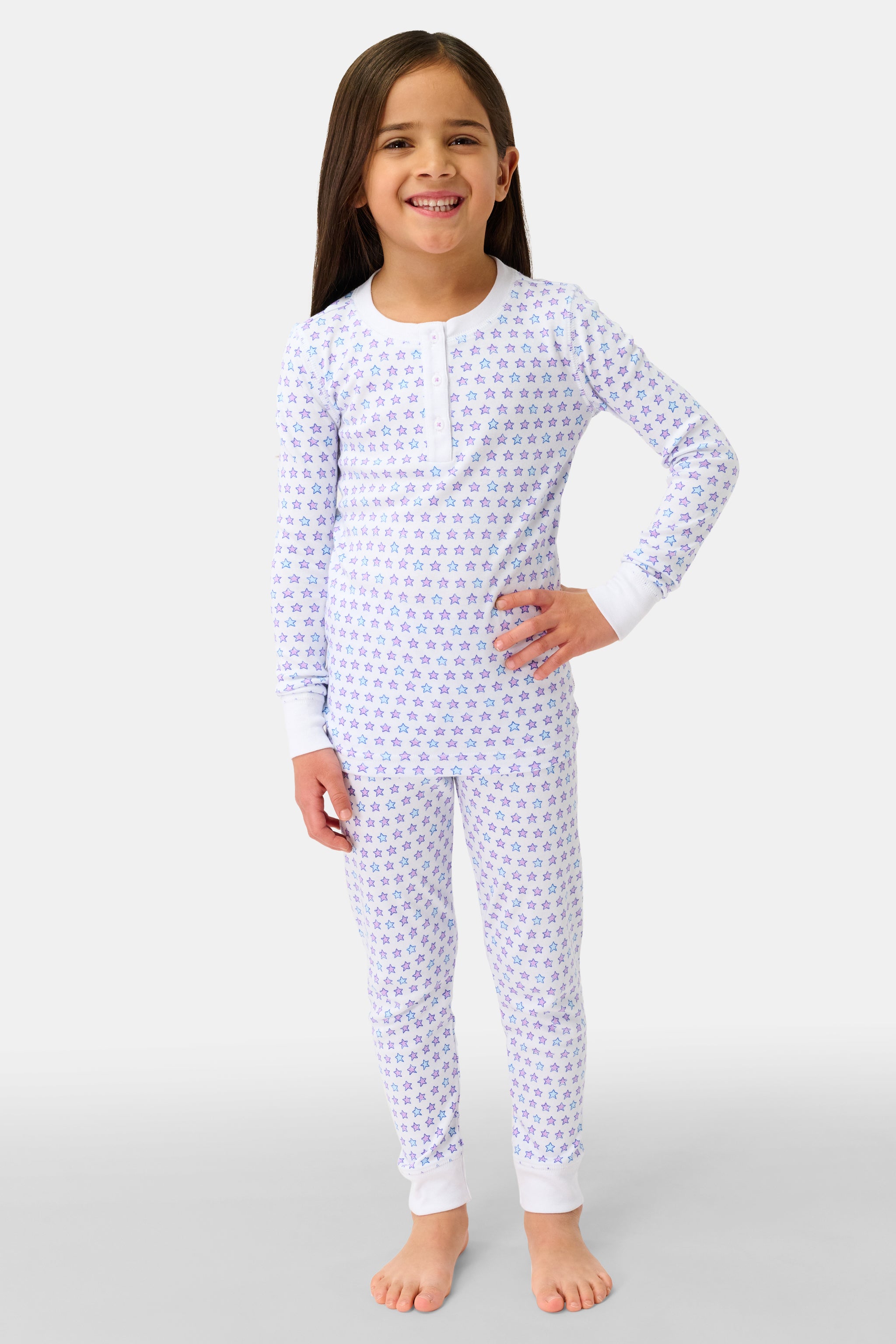 When the stars come out, so do these cute PJs! With a henley top and fitted bottoms, the Juniper Pajamas surround your little stars in Pima cotton comfort.