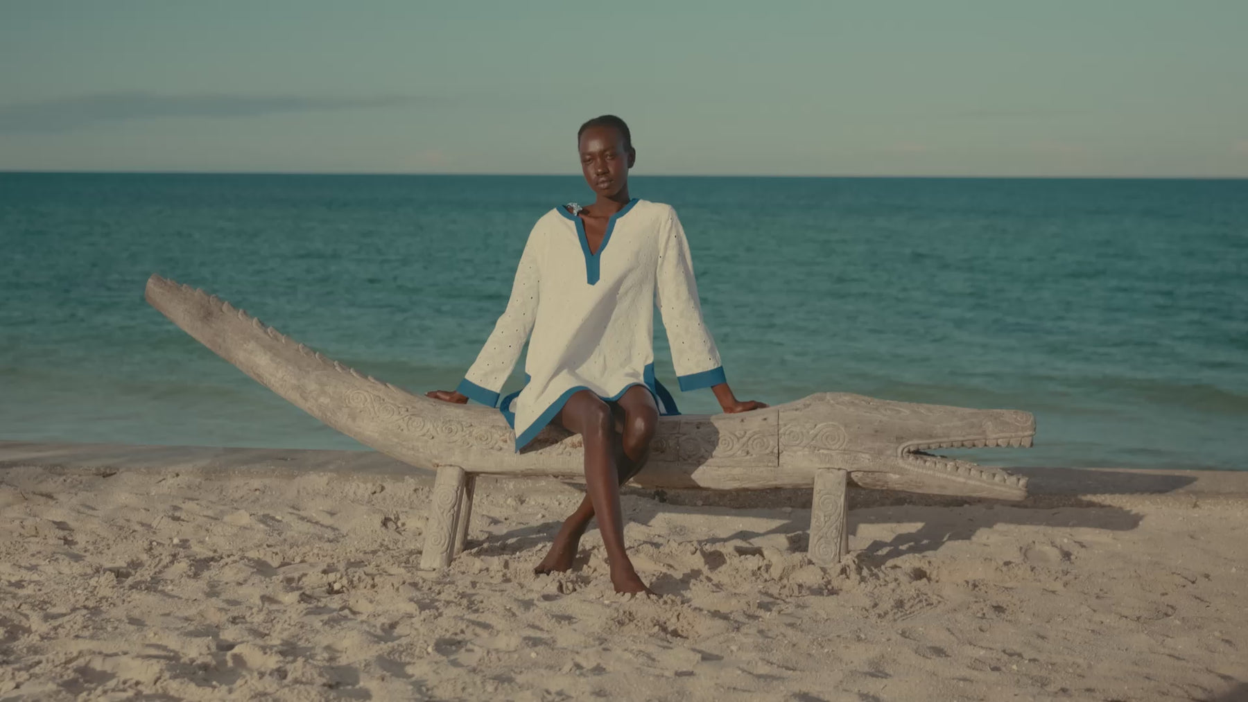 Roller Rabbit White Naolin Fish Border Anu Long Kurta
