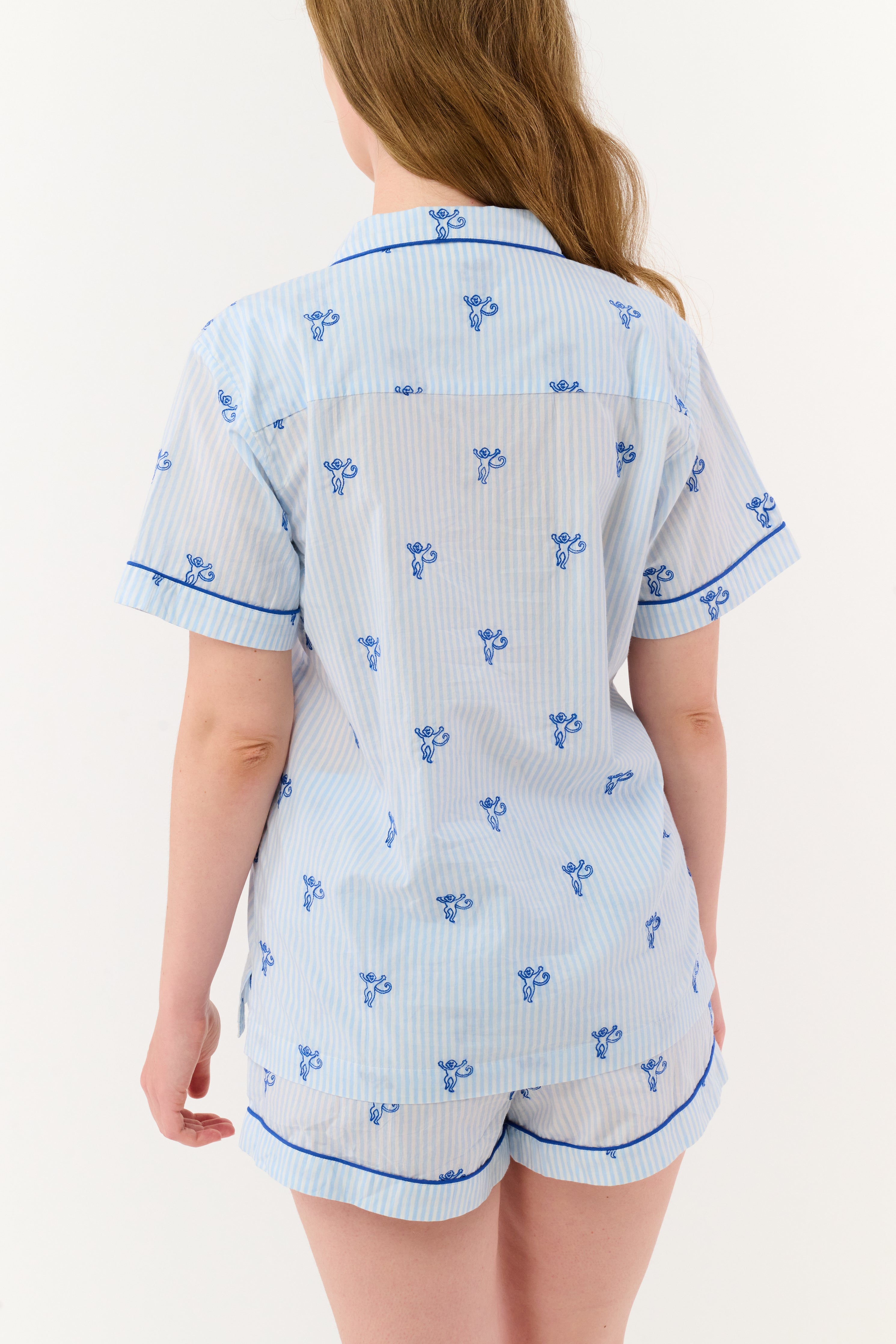 Loungewear shouldn't just be comfortable—it should be cute too! Our Mini Monkey Stripe Livy Set, a two-piece short-sleeve set, checks all the boxes: crisp striped cotton, adorable mini monkeys, and a totally timeless silhouette.