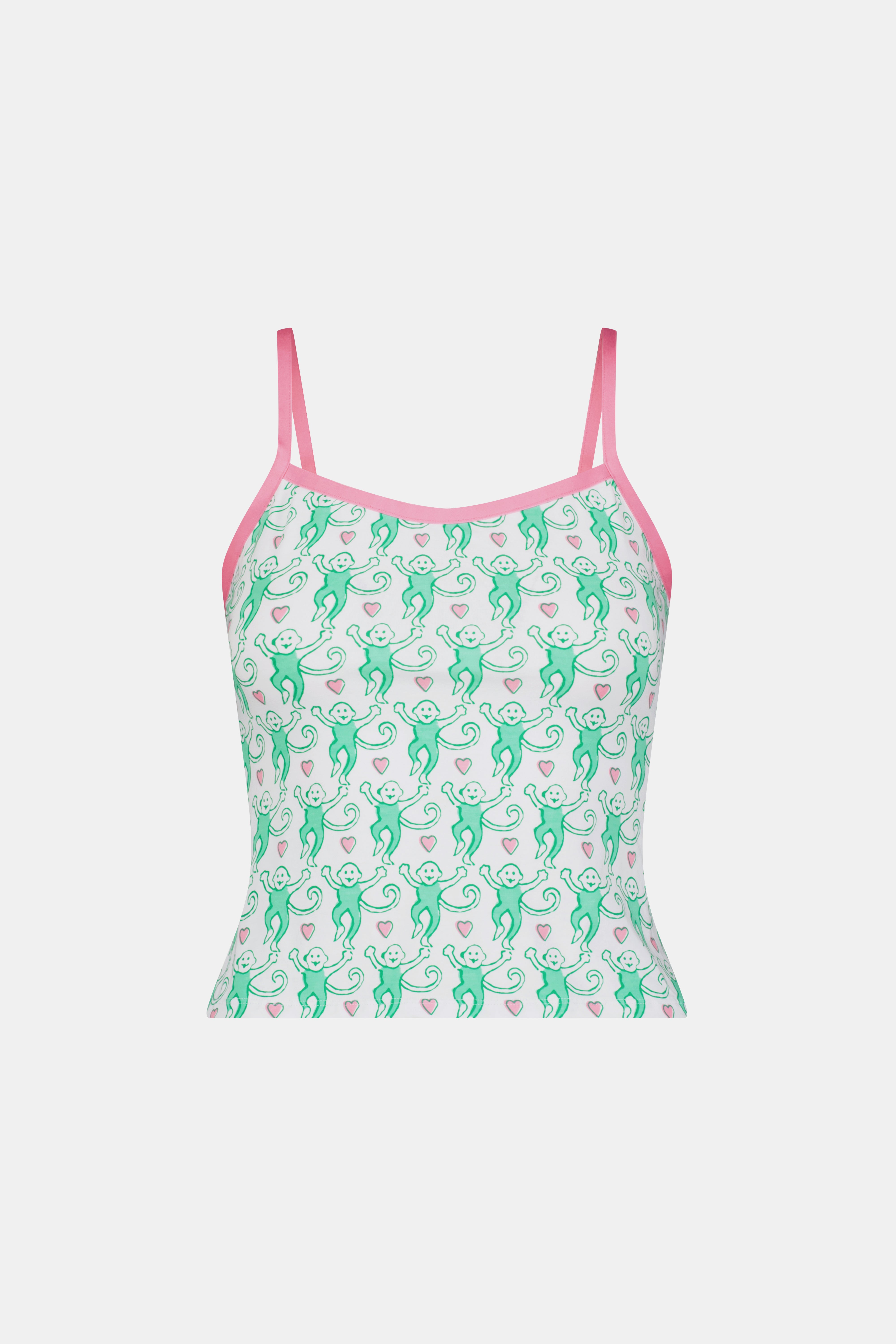 Brighten things up with a cheerful Kelly green cami covered in our signature mischievous monkey print. This spaghetti strap tank is made from lightweight cotton modal and looks even cuter with the matching Jones Shortie.
