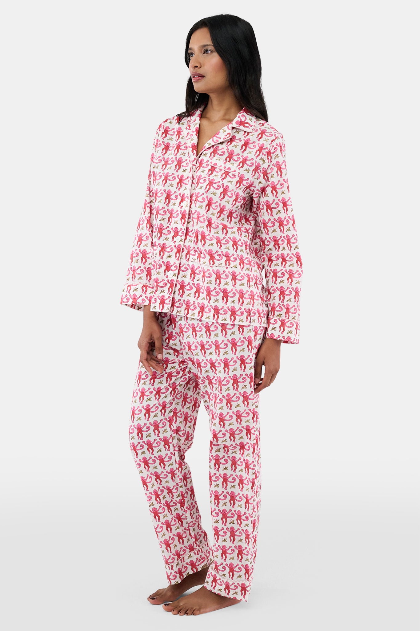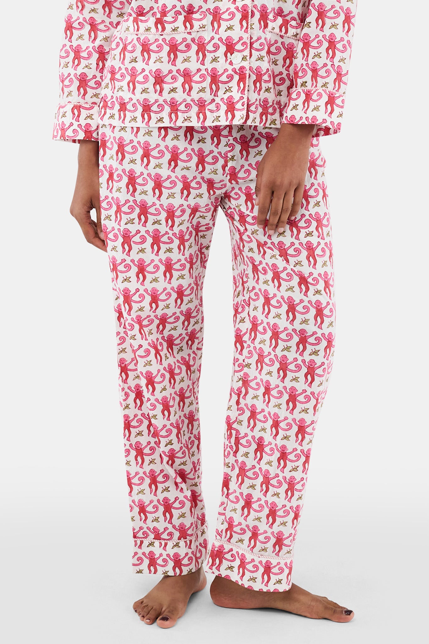 Get comfy for bedtime while looking effortlessly put together for breakfast the next morning in this pajama set. This set includes a long-sleeve button-up pajama top featuring our Monkey print and matching pajama bottoms. The lightweight, breathable cotton ensures lasting comfort.