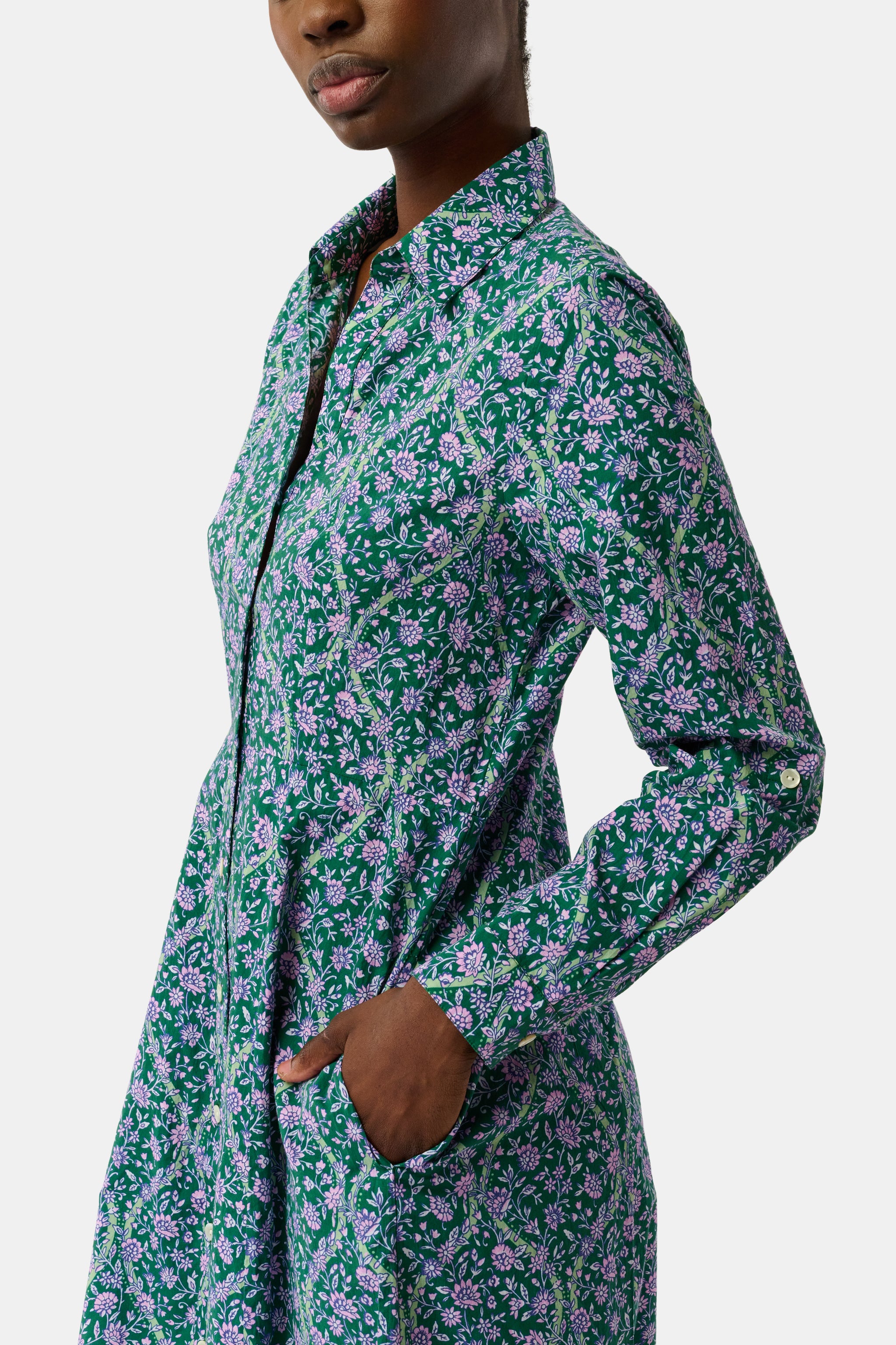 Elegance personified. Our Darla Dress is a gorgeous full-length poplin shirtdress in the dreamily romantic Suzie Floral Ribbon print. This charming style works well for day-to-day or a more formal occasion—just change up the accessories and you're good to go!