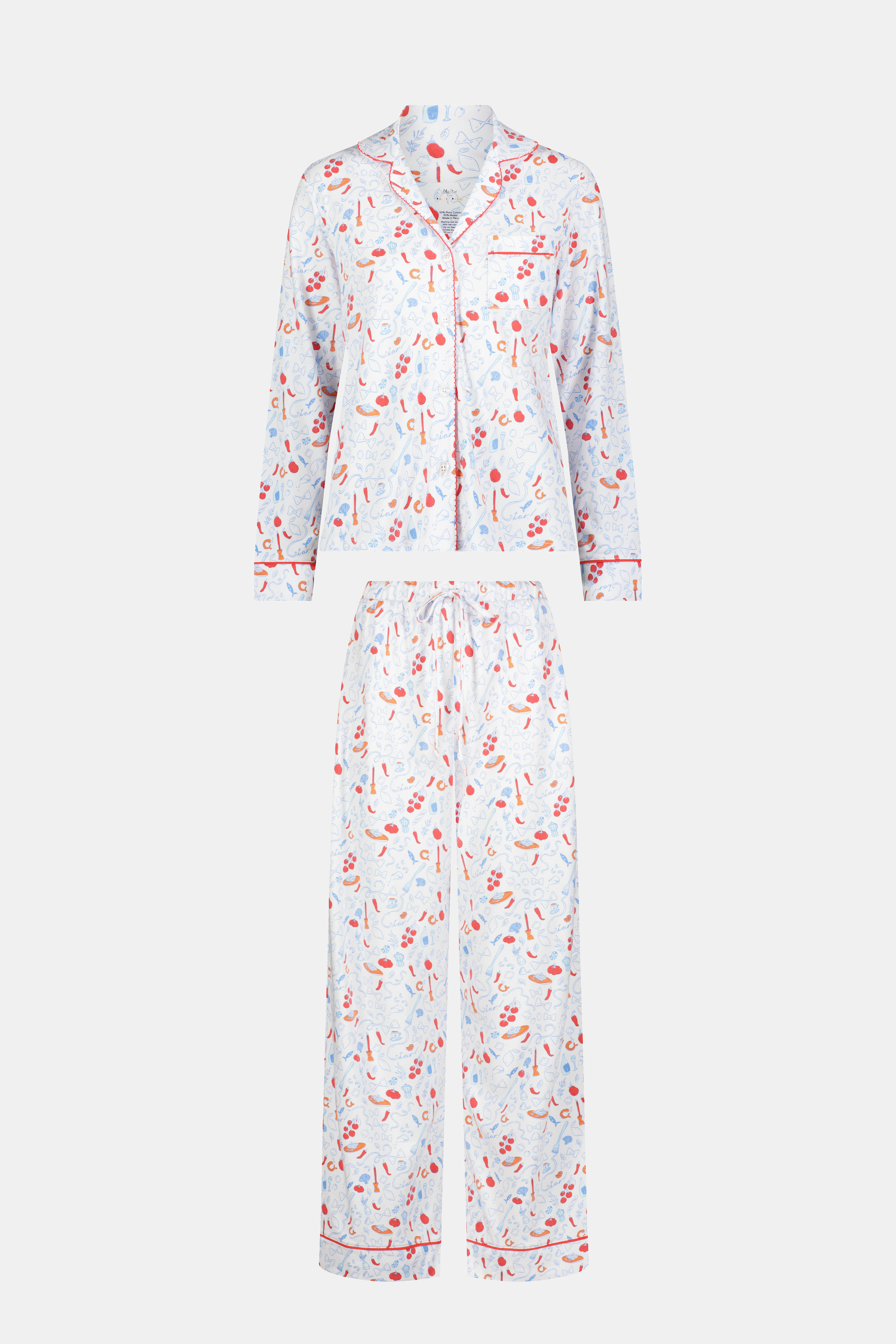 Dream of an Italian summer when you're kicking back in our Lindy Lounge Set, made with silky soft Pima modal fabric and covered in a gorgeous foodie print designed in collaboration with Lilly Sisto.