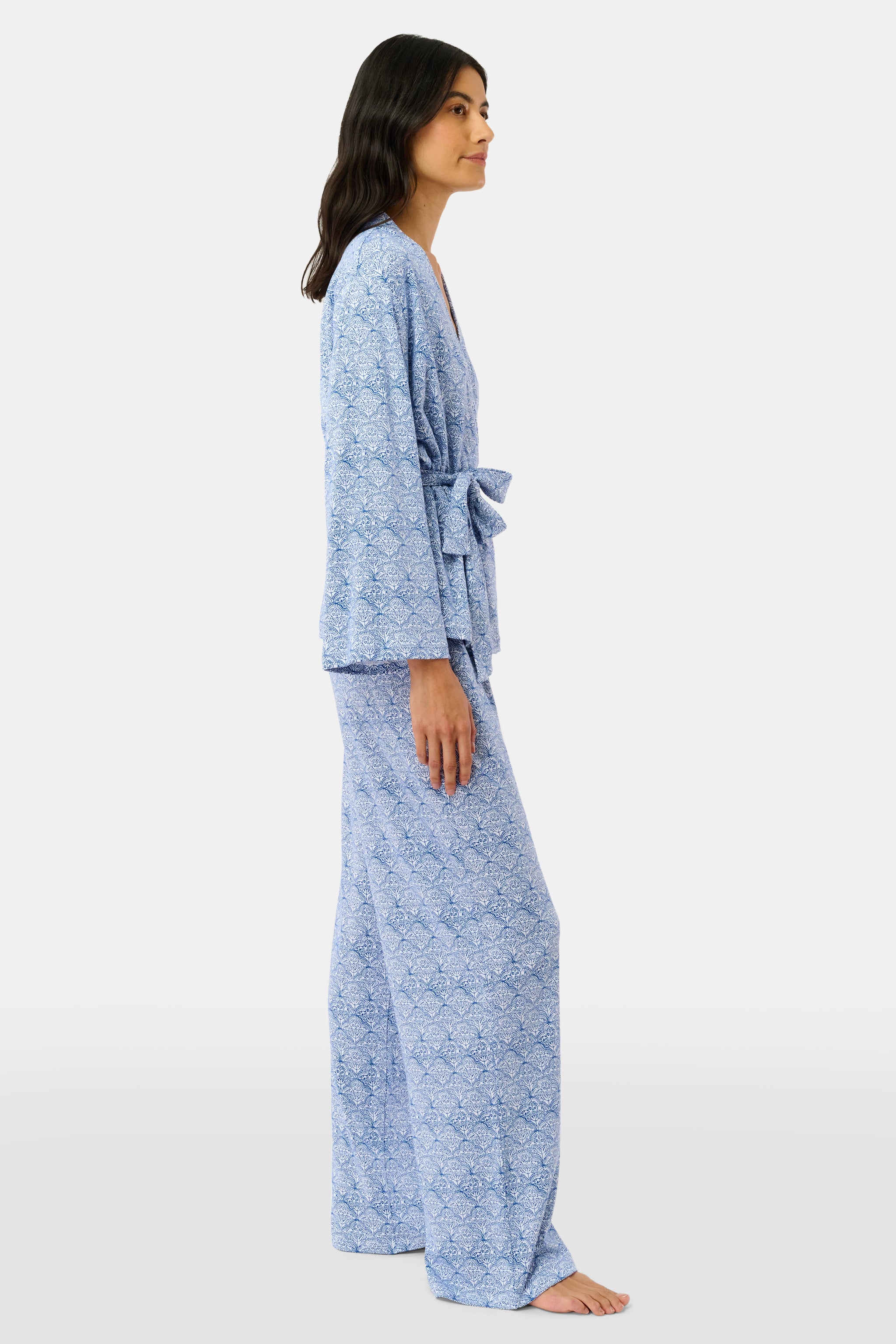 Elevate your day-off ensembles with our new Millie Set, a soft, flattering loungewear two-piece cut from the dreamiest Pima Soft fabric. The adjustable wrap top can be worn fitted or loose, and the classic-fit, pajama-inspired pants are made for effortless ease.