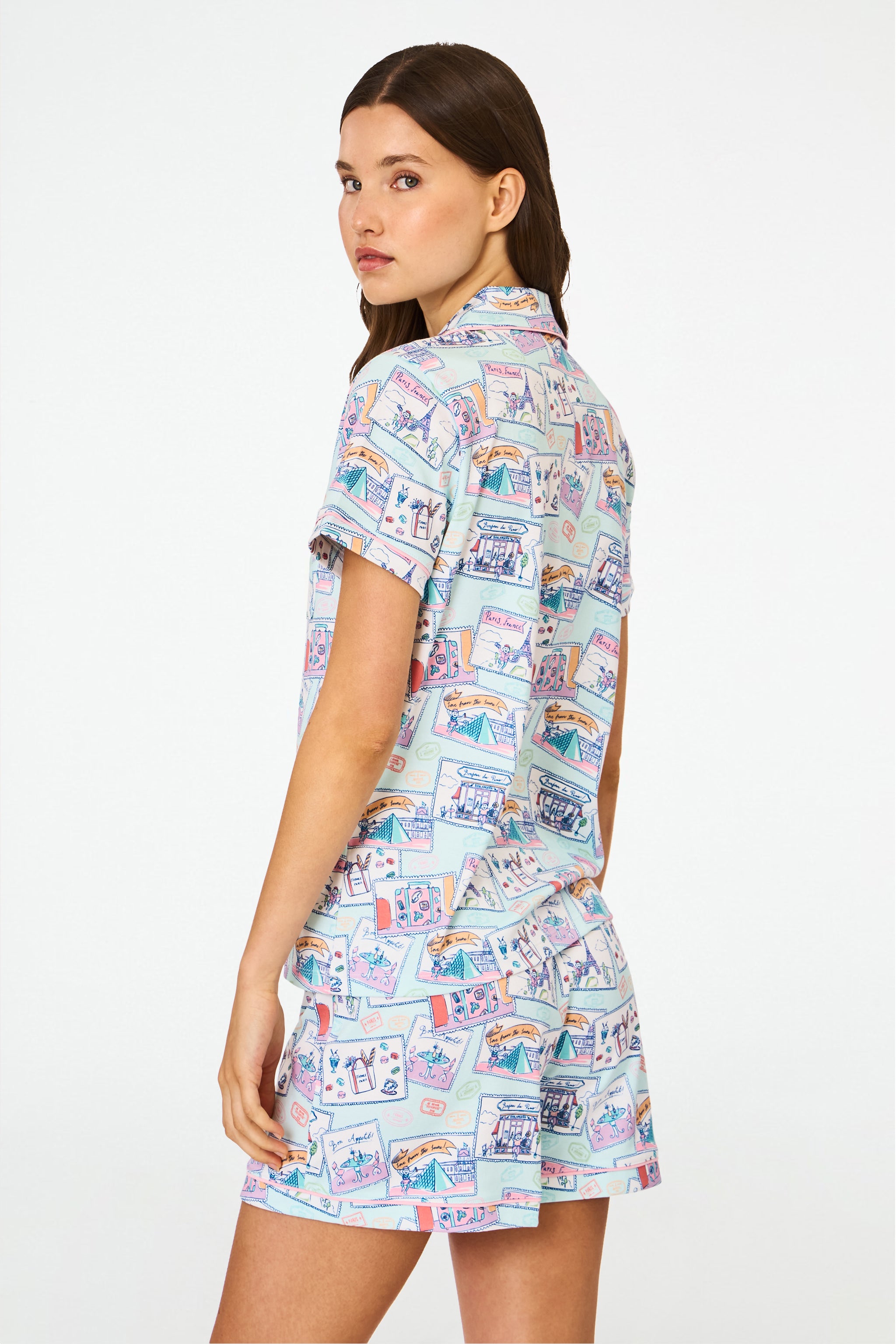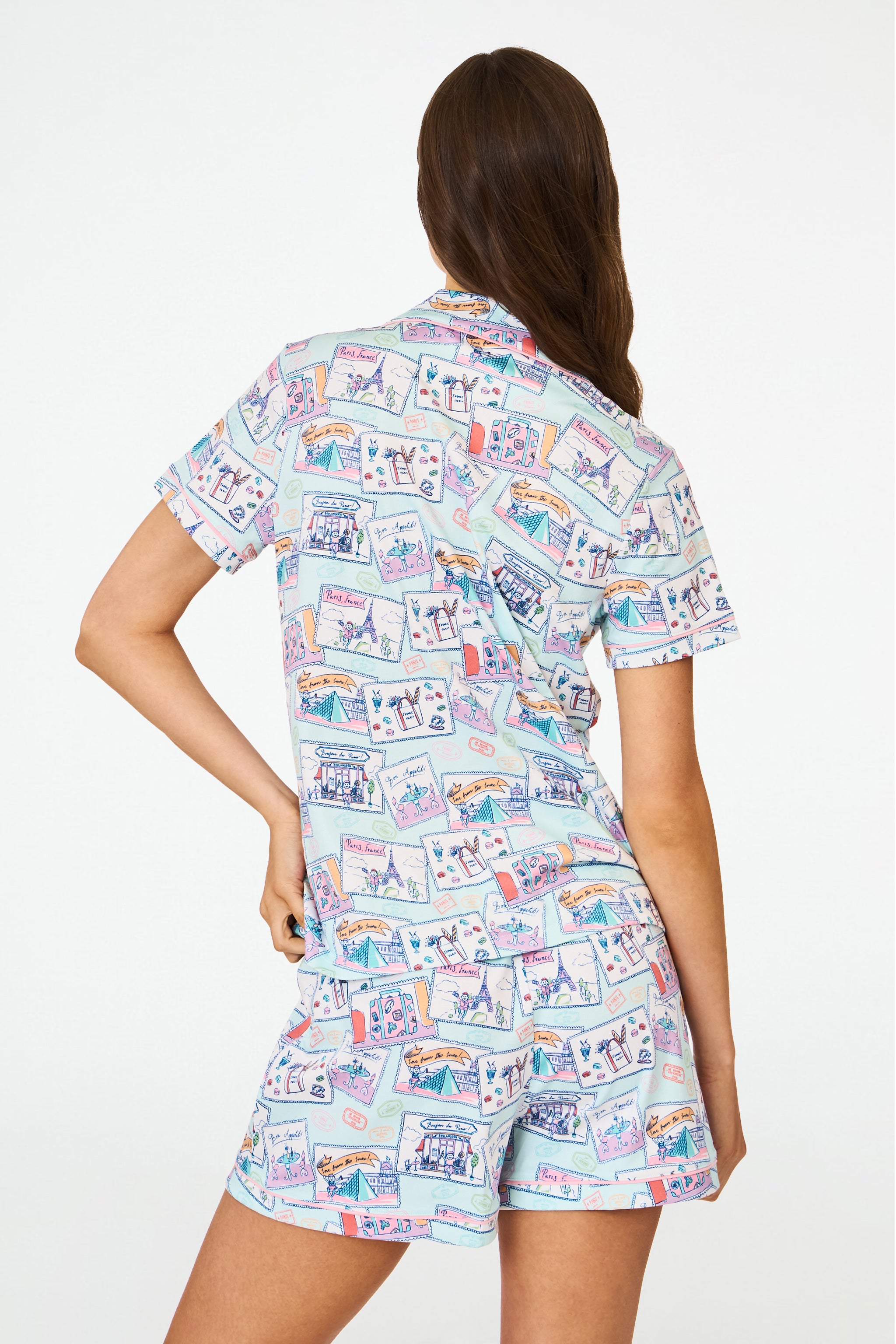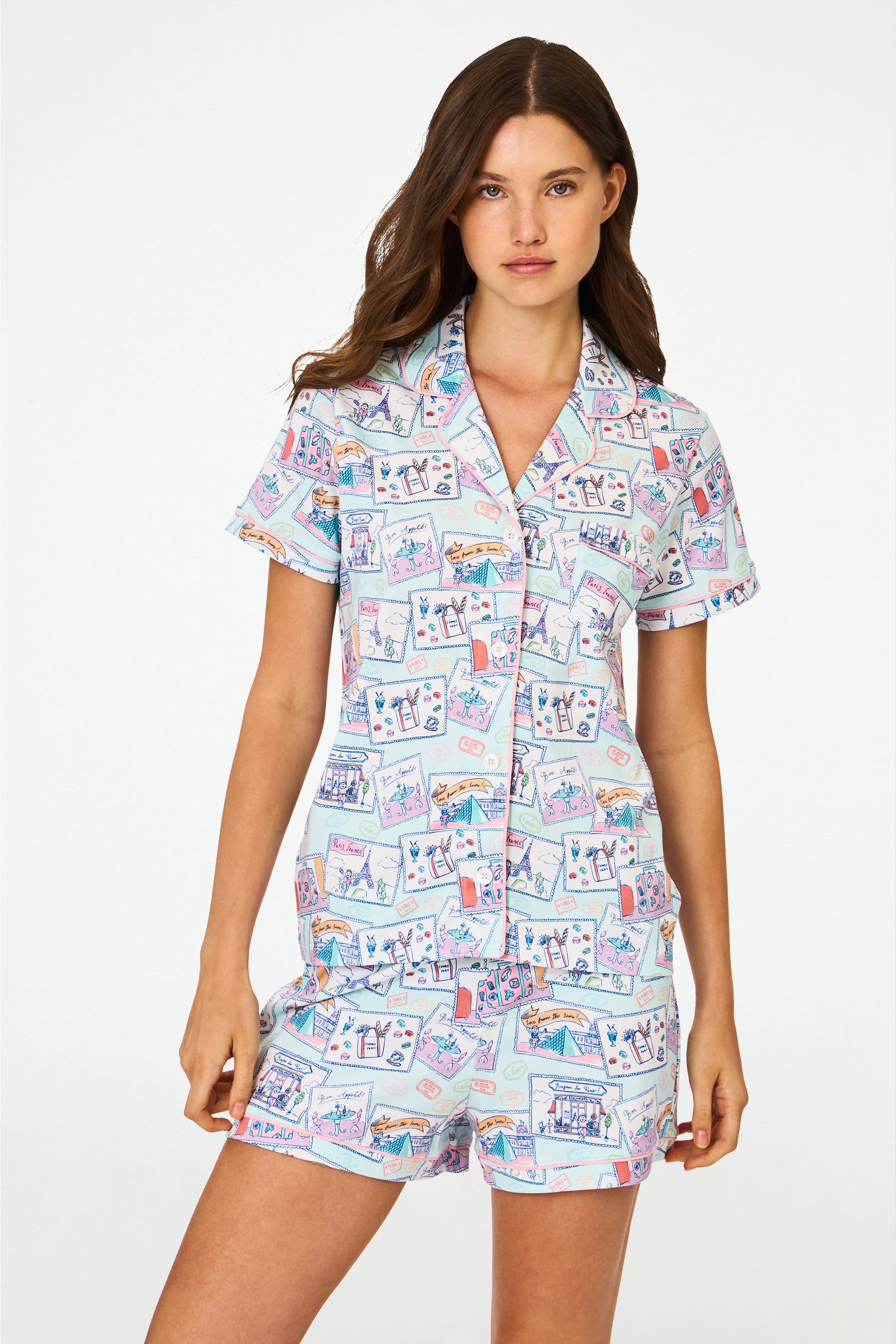 Tres chic! Even if you're not headed to the City of Lights, you can pretend you're en route to Paris in the Polo Pajamas, a super-soft Pima shortie PJ set in the cutest Parisian print.