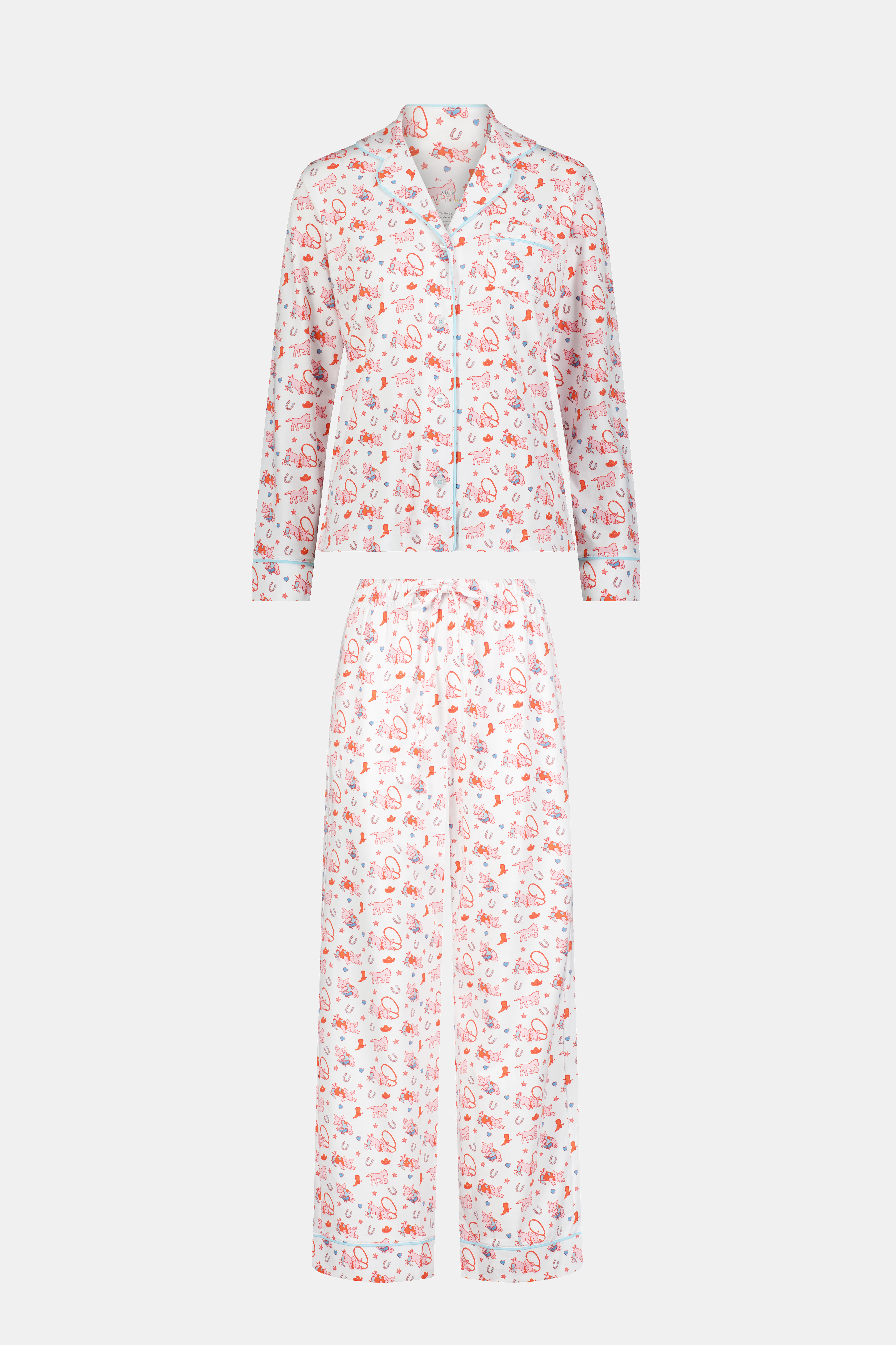 Piggy up, cowgirl! With a cheeky Western theme inspired by Lilly Sisto and Dallas, these long-sleeved pajamas are made for hittin' the hay.