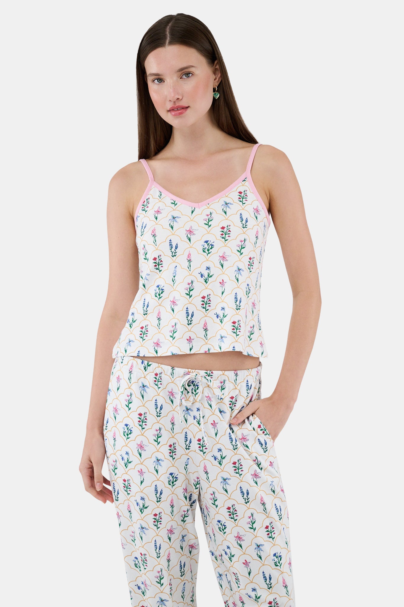 Pretty PJs make everything better. Our Joanie set is a classic cami and pants set in heavenly soft Pima cotton with stunning wildflowers and our classic Jemina print.