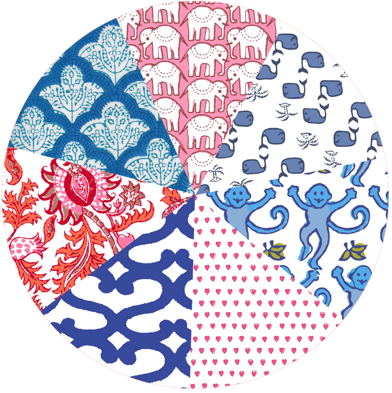 We express happiness this through print, pattern and palettes that make us smile. This icon indicates prints and patterns that are happily hand-painted in our NYC design studio!