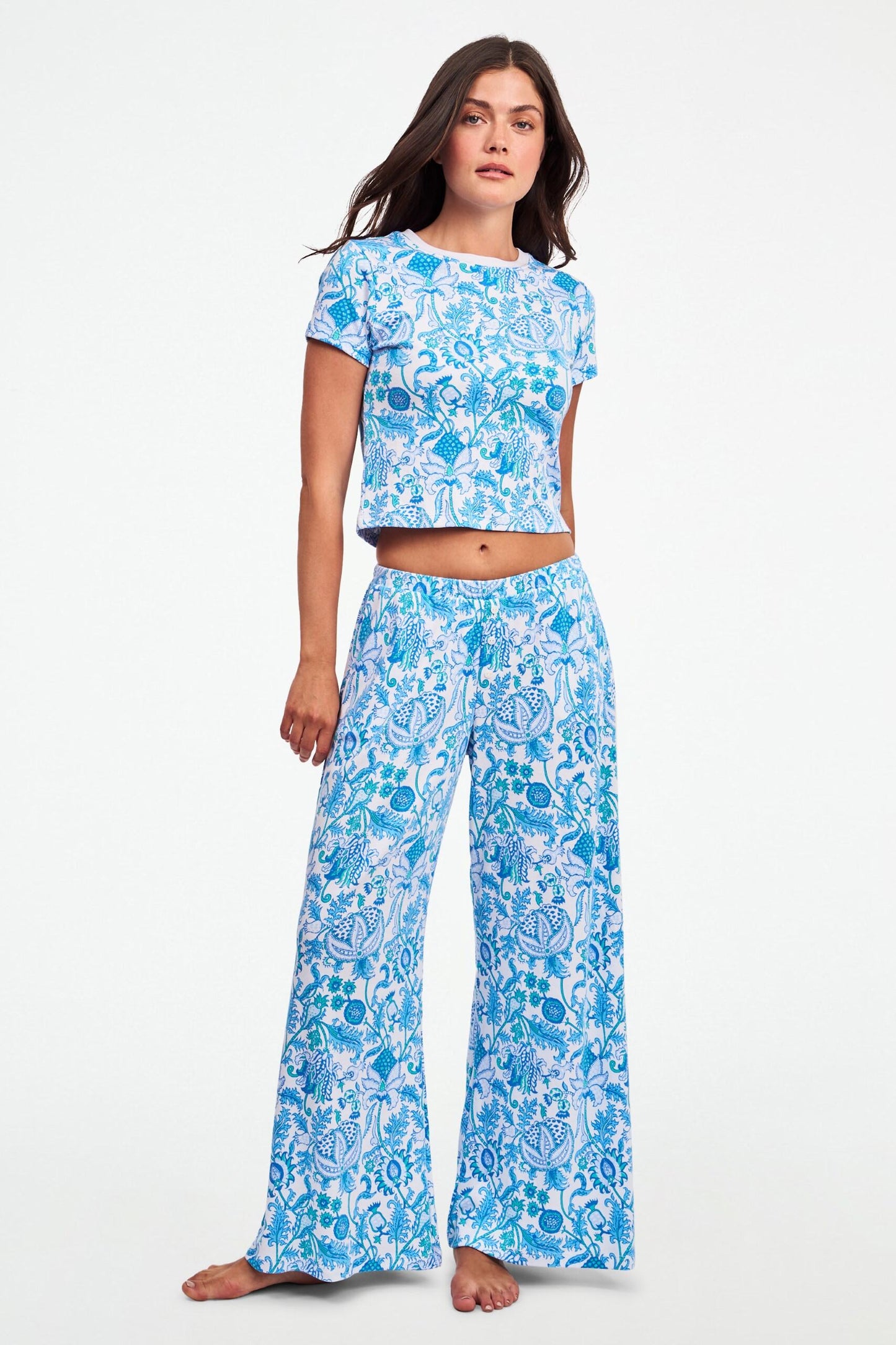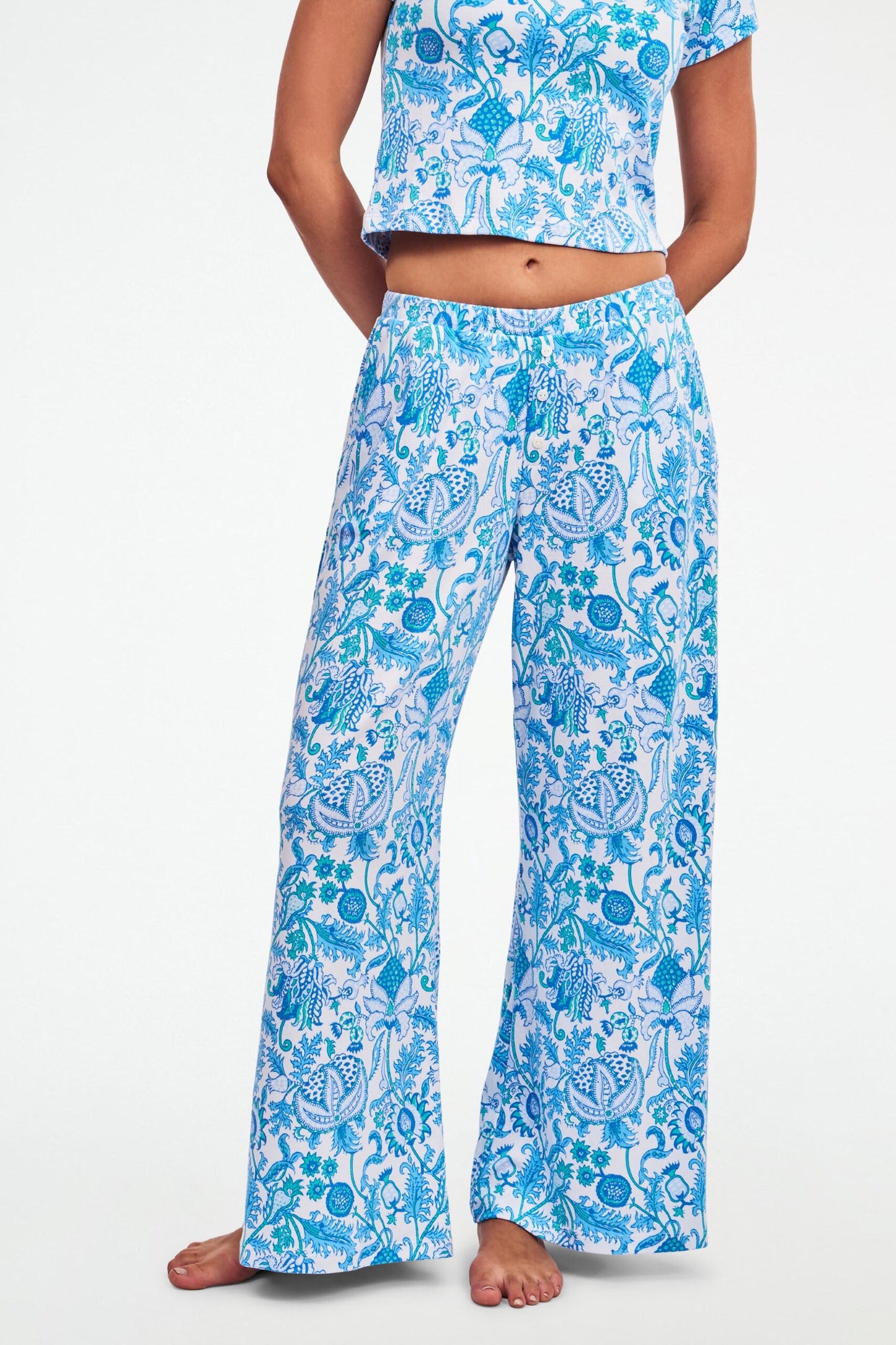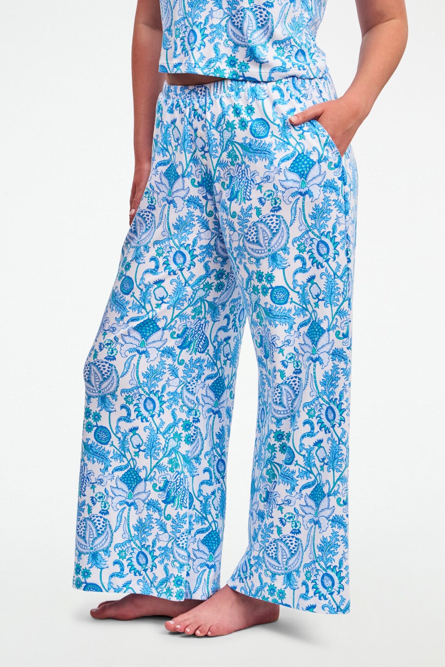 Perfect for lounging in style, the Boden Pant is relaxation, elevated. These loose-fitting blue floral pants are made from the softest pima cotton fabric, which keeps you cool and comfortable all day. An elastic waist and side pockets add to the comfort.