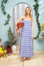 Pure perfection - the Dakota Dress is a maxi-length sundress in the rich blue Big Cata print. Spaghetti straps and a loose fit keep you cool and breezy all Summer long.
