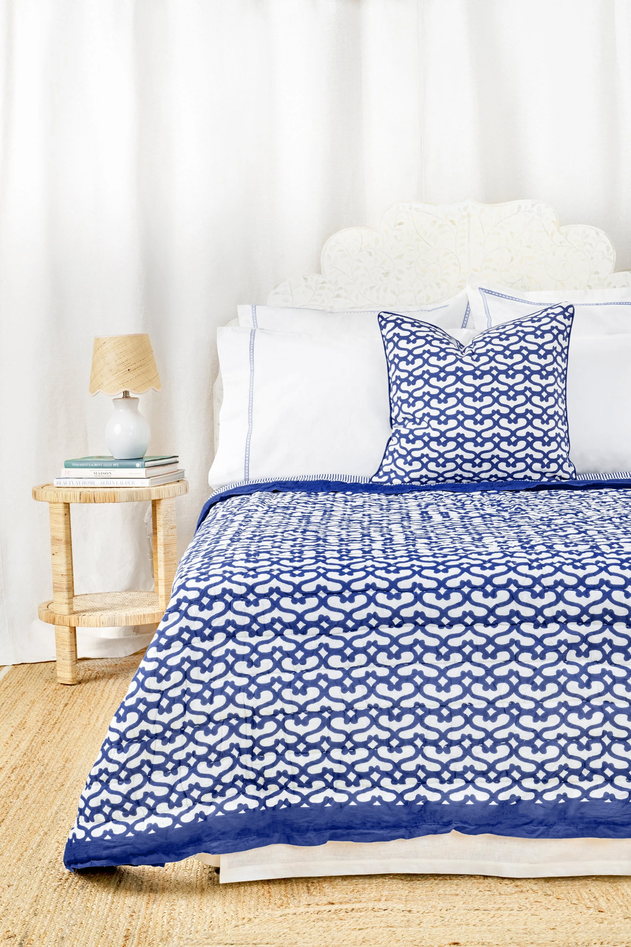 I've been looking for a navy and white summer quilt that doesn't look like it's from Little House on the Prairie. I can't wait to get this on my bed.