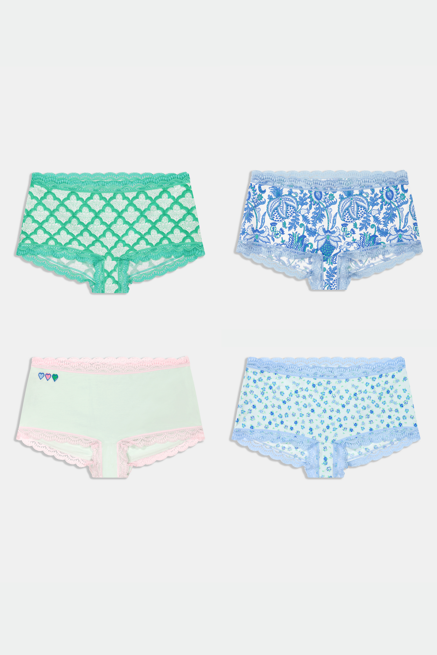 Get comfy in full-coverage cotton boyshorts in serene shades of blue and green. This 4-pack makes restocking or refreshing your underwear drawer so easy.