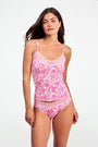 There's something so elegant about a matching camisole and underwear set, and our Perry Cami is the perfect option. This pretty, printed cotton cami looks great on its own and even better with the Waverly Bikini.