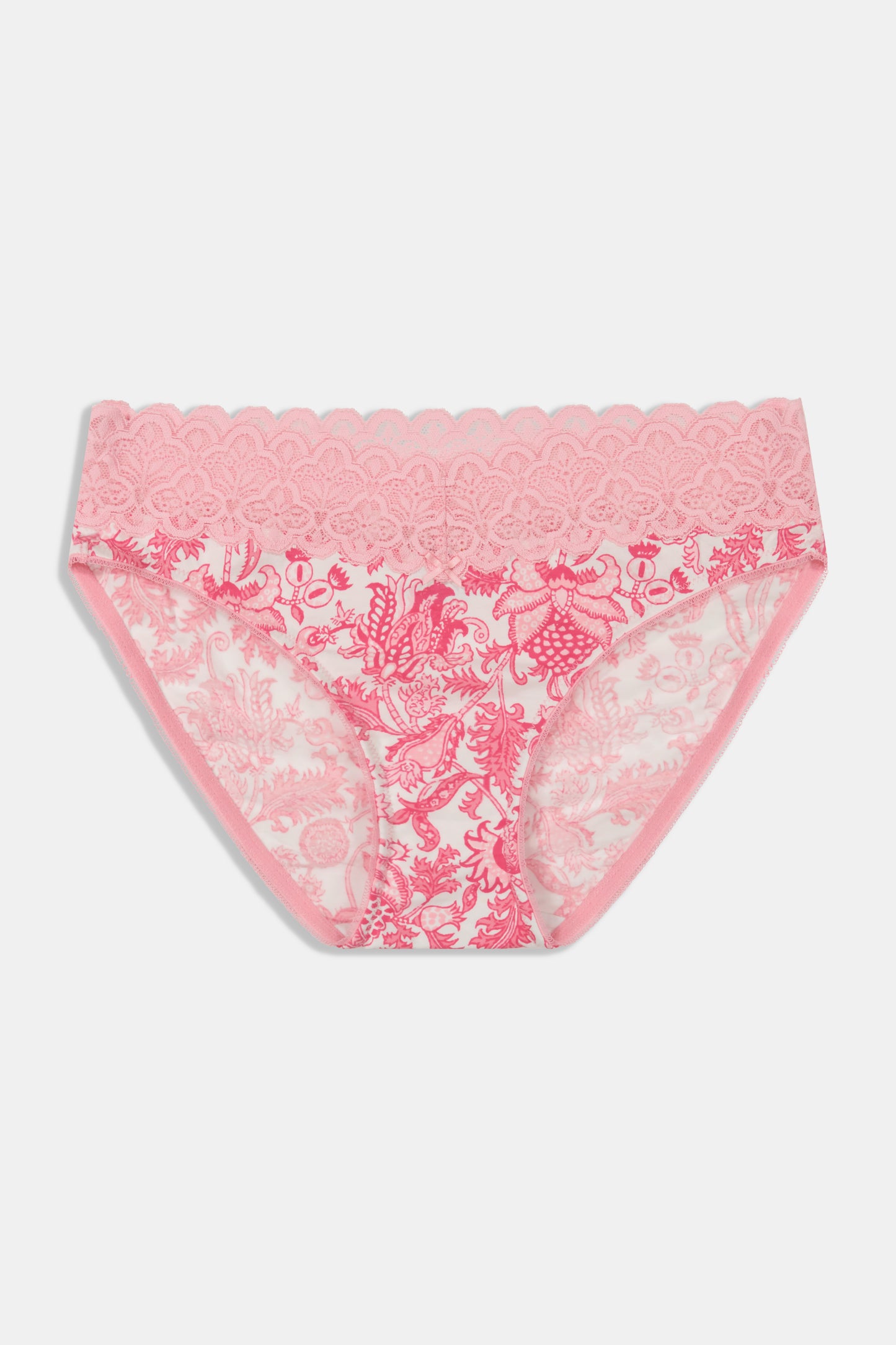 A forever classic, bikini underwear is both cute and comfortable for everyday wear. Pair the Waverly, a cotton bikini undie in a pretty pink print, with the matching Mercer Bralette.