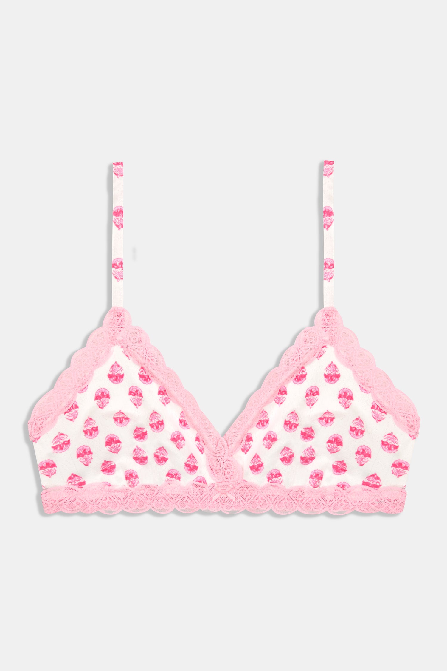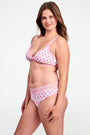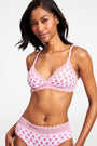 An easy, everyday essential, the Jane Bralette is a lightly supportive style with triangle cups and an adjustable hook band. For a matching set, we love pairing this pink floral print bra with the Cornelia Hipster or Jay Thong undies!