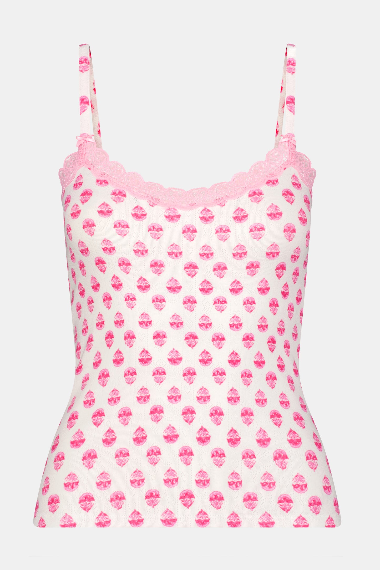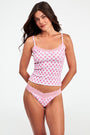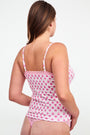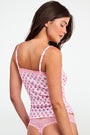 Whether you wear it out and about or while lounging at home, the Perry Cami is both pretty and practical. Made of lightweight cotton-stretch pointelle, this printed pink and white cami is great for layering or wearing like PJs.
