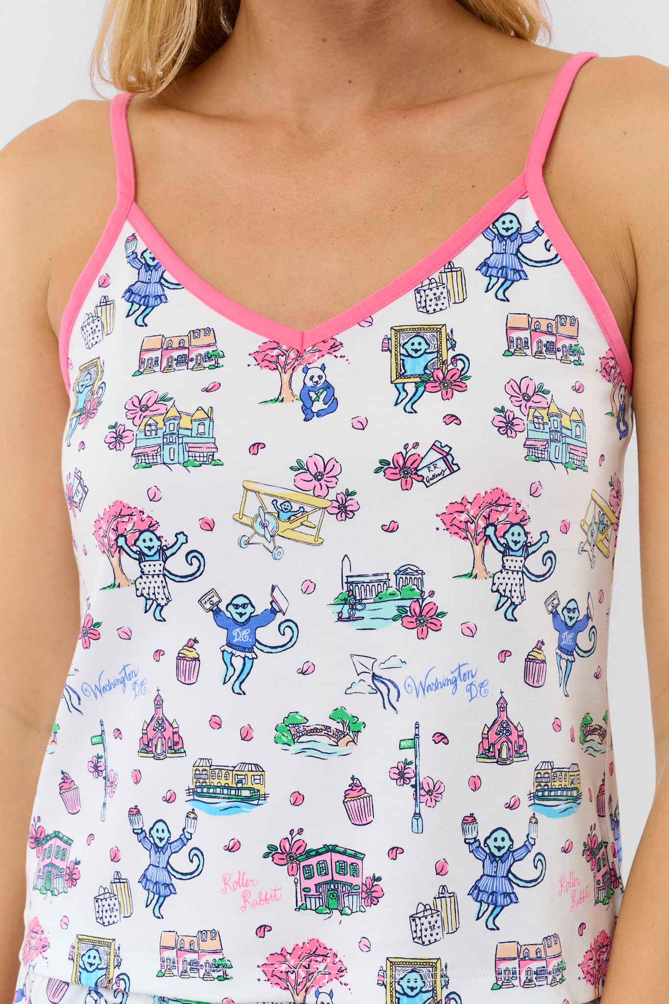Next stop: D.C.! Travel to the nation’s capital with our playful, whimsical monkeys. Our fan-favorite pajamas feature charming illustrations of iconic D.C. landmarks and subtle local references—plus blooming cherry blossoms as a sweet nod to spring.