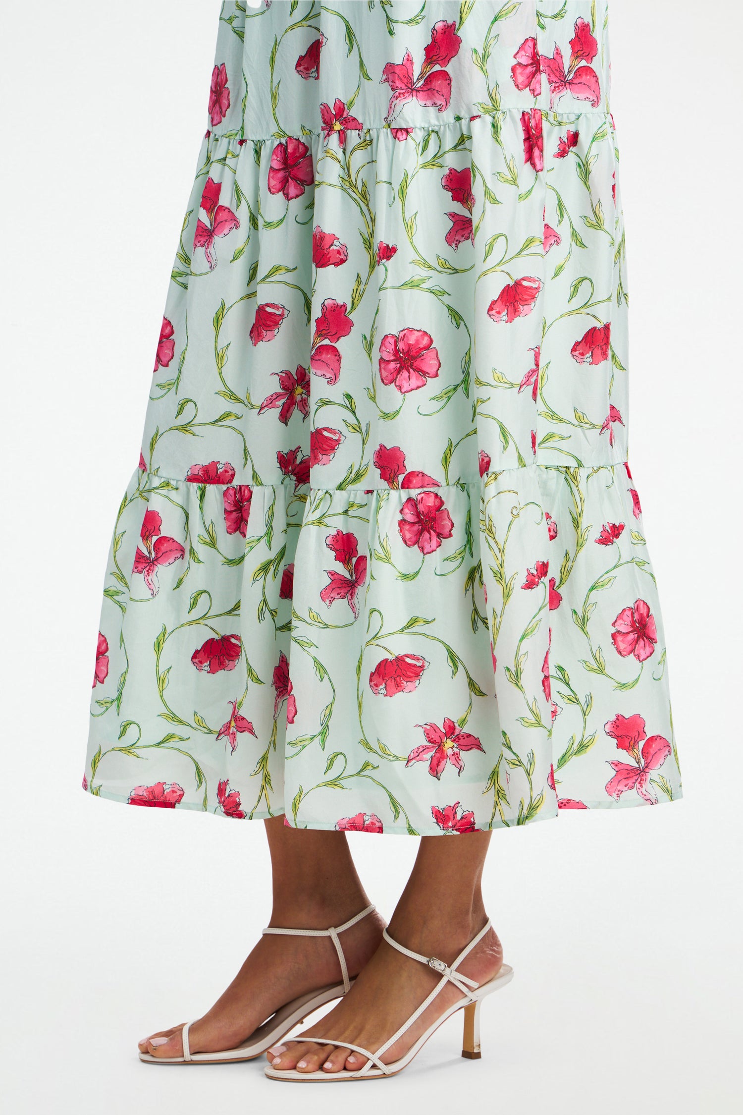 Our Milani Dress is the perfect balance of glamorous and romantic, with a dreamy floral print and the softest silk fabric. The full-length dress flows to the floor with graceful drama and the smocked waistband adds a touch of breezy comfort.