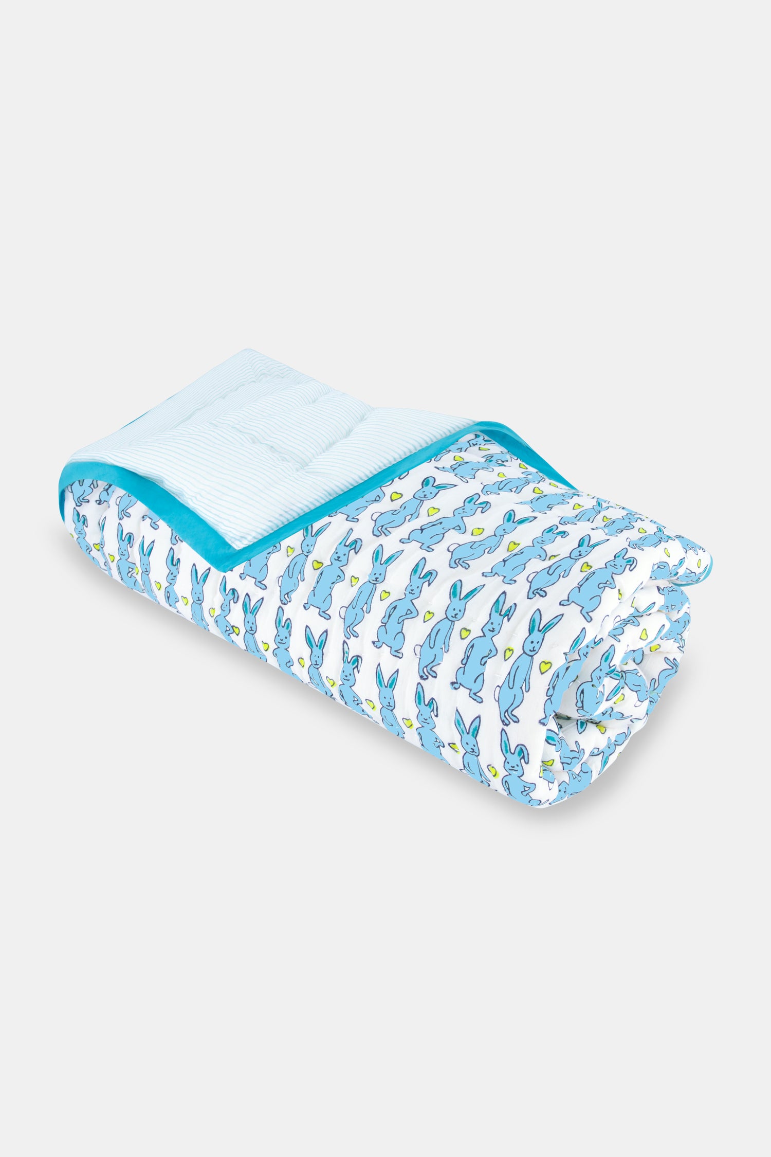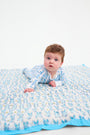 Keep baby warm and cozy in this quilt that features soft, breathable cotton construction and our classic hand-block Hoppy the Bunny print. Please note: natural variation will occur and is celebrated!