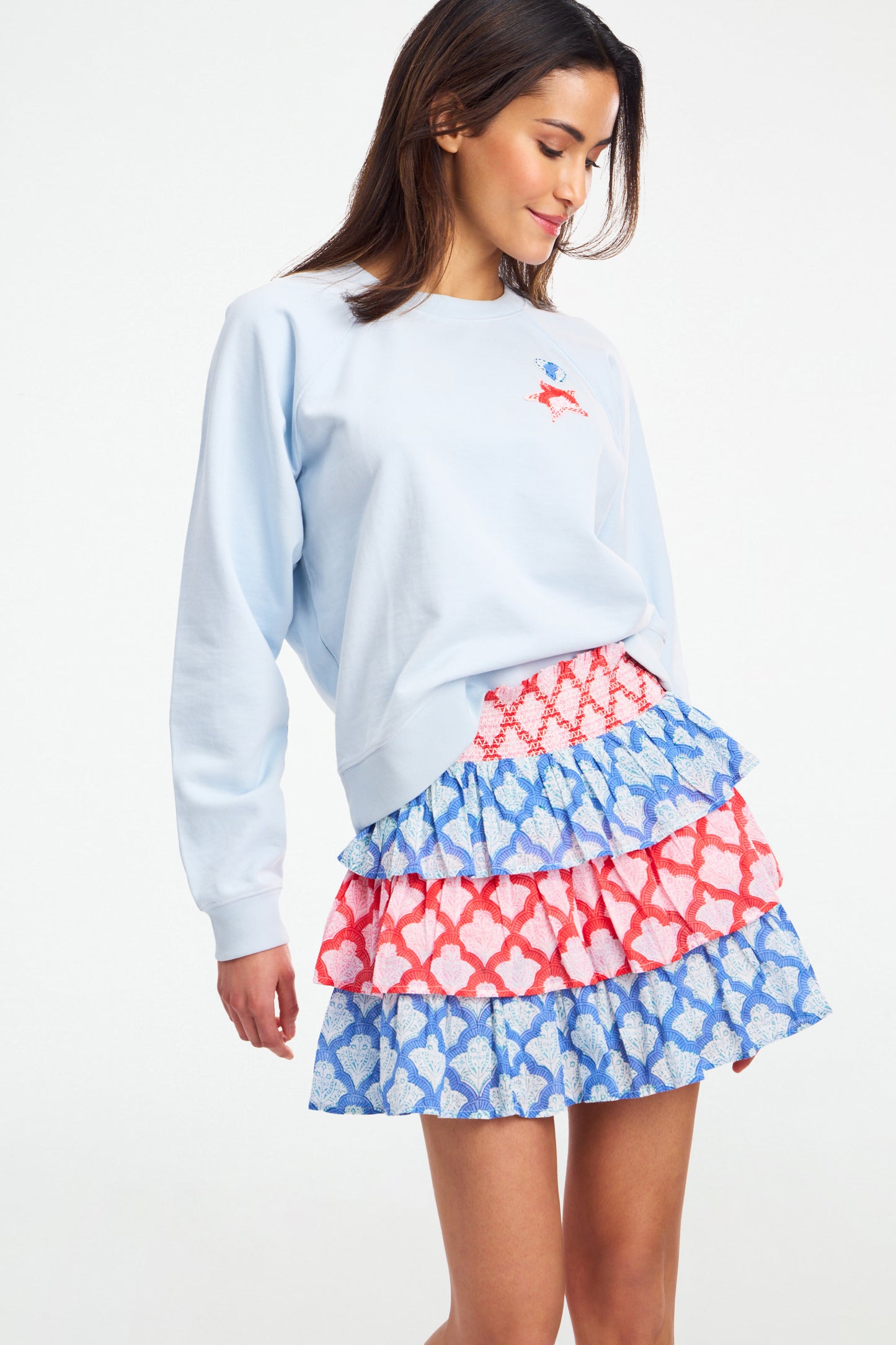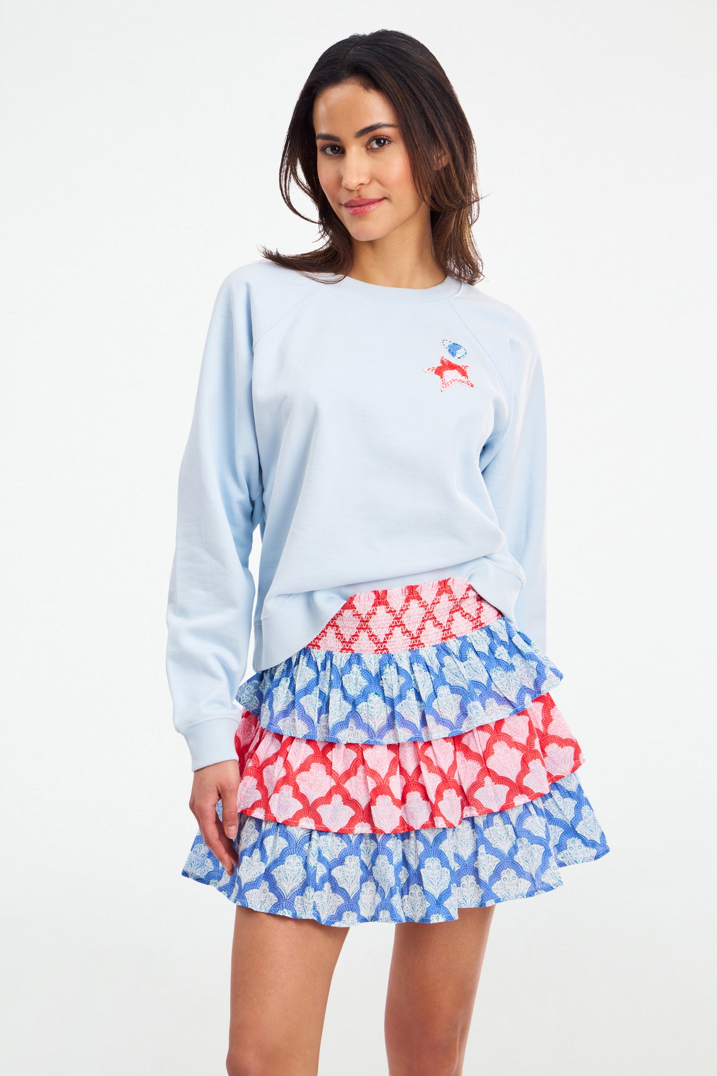 Grab your sparklers and shine on! Our fan favorite Siggy Skirt gets a festive upgrade in shades of blue and red Jemina print. The breezy cotton voile is perfect for those hot, sunny summer picnics.