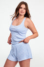 The definition of short and sweet, TBH. The Sullivan Shortie is a cotton-stretch pointelle style in an adorable light blue Jemina print. Pair it with the matching Astor Tank for your next grown-up sleepover.