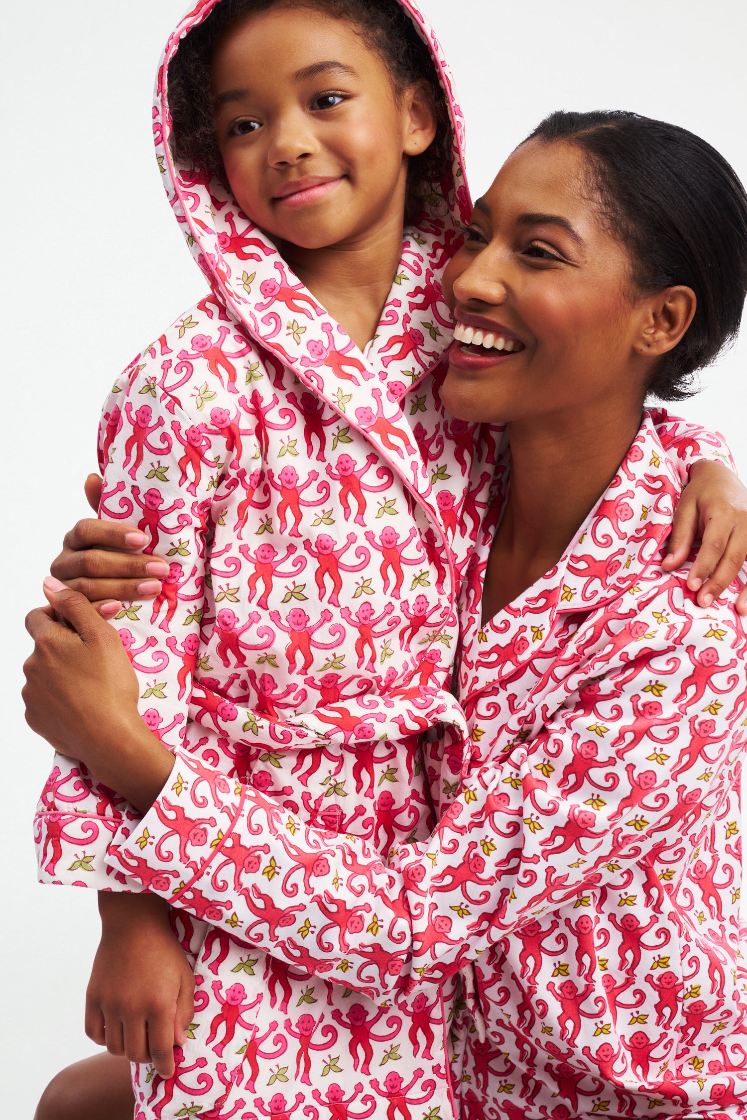 Keep your little ones warm and cozy after bathtime in the Kids Cosmo Robe, a soft and snuggly terry-cloth hooded bathrobe in our signature Monkey print.