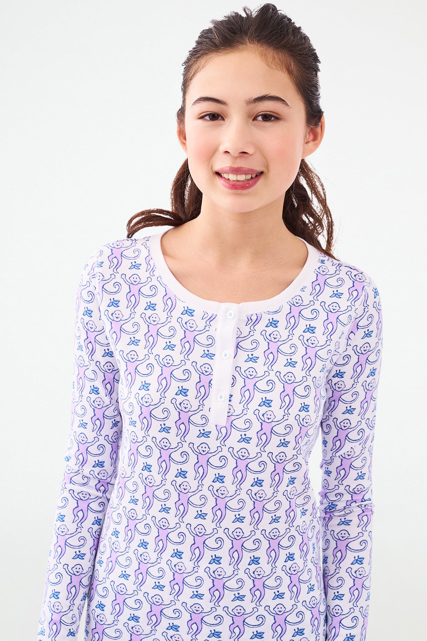 Your little one will enjoy the cozy comfort of our Monkey Pajama Set that includes a long-sleeve pajama top with a button-up neckline and our charming original Monkey print, plus matching pajama bottoms.