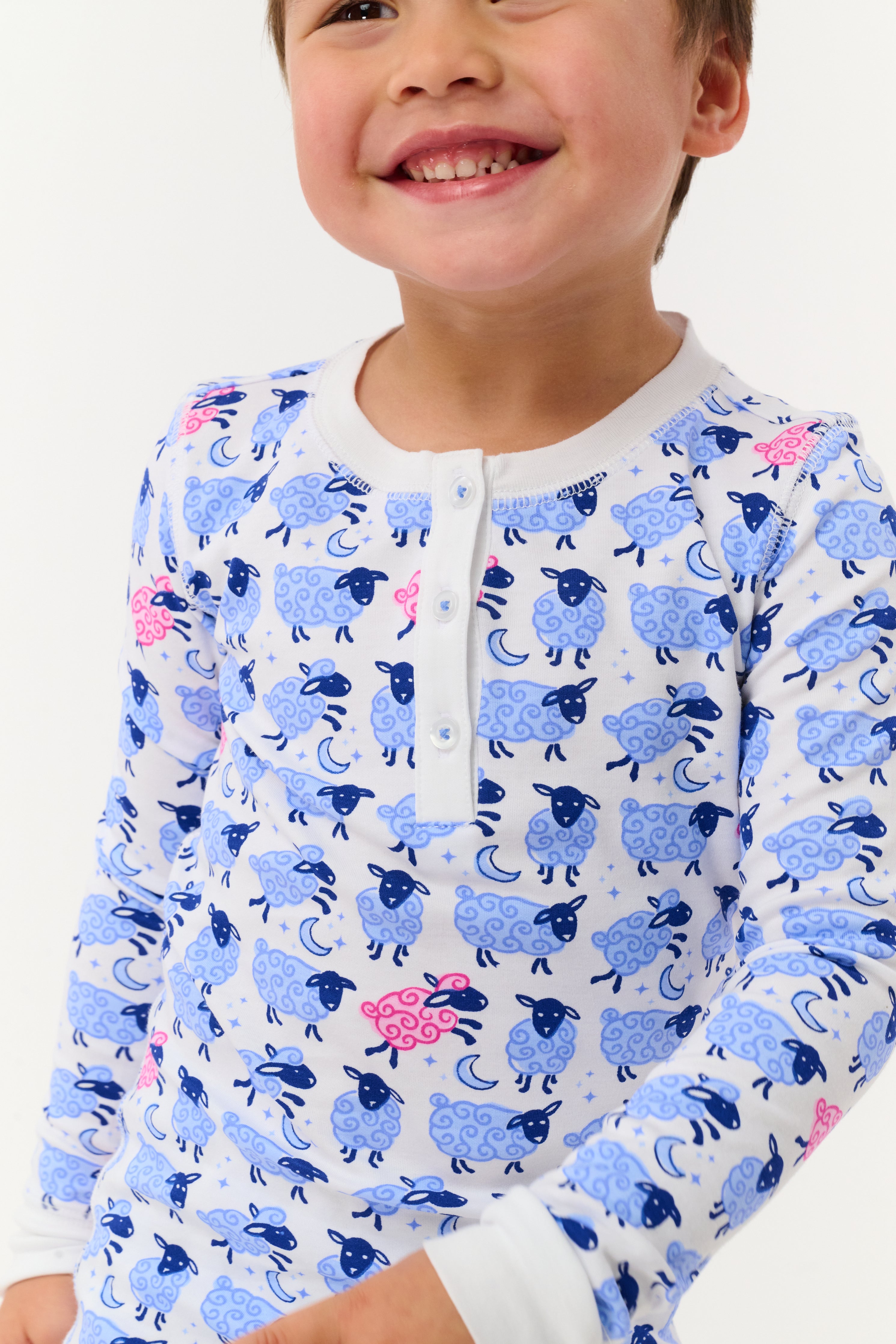 If your little ones can't sleep, tell them to count the sheep on their PJs! The illustrated flock and comfy-cozy Pima cotton fabric is the cutest way to calm down after a busy day.