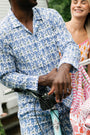 He'll be excited to embrace his inner child while wearing this comfy cotton pajama set that includes pants and a matching button-up top with a collar, both featuring a hand-blocked playful monkey print. The soft, breathable cotton offers comfort for both sleeping and lounging around.