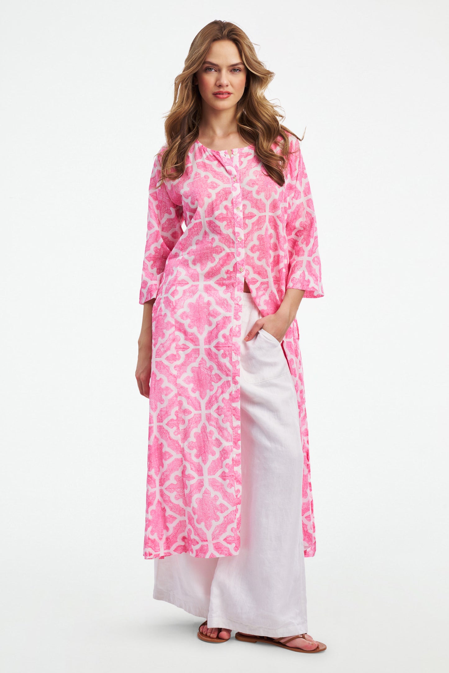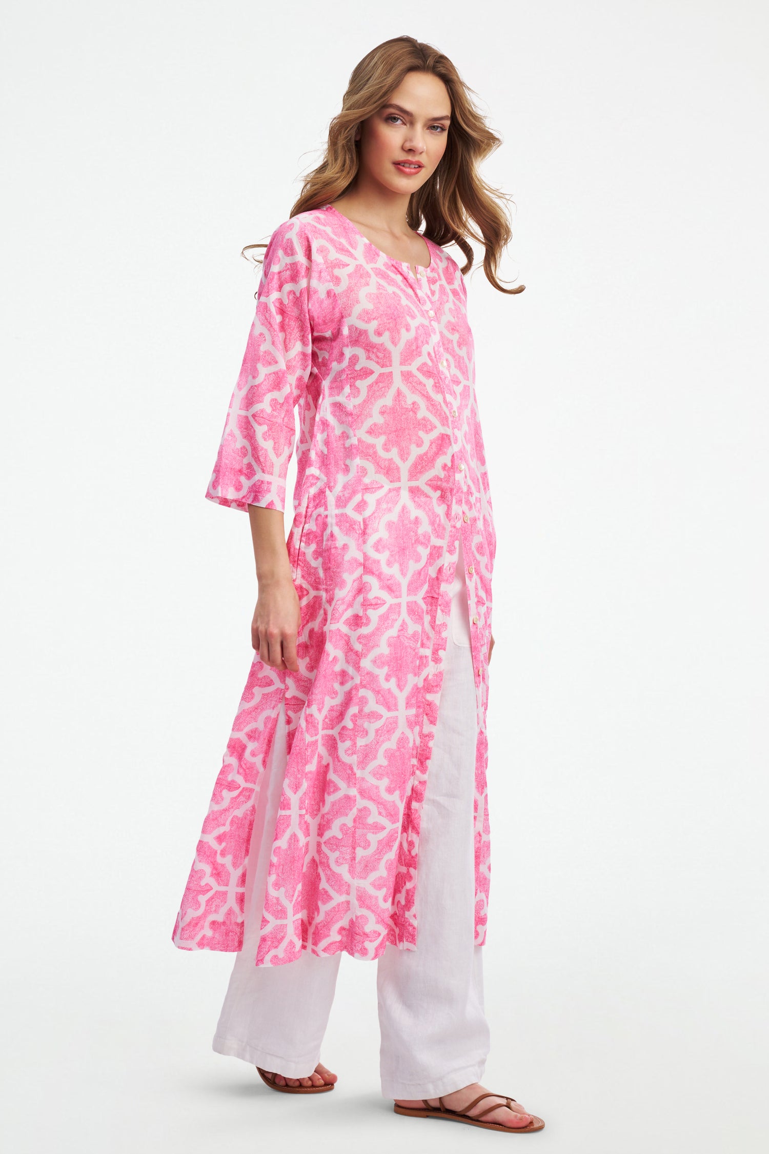 The Any Long Kurta gives you endless styling options. Wear it open over your swimsuit, button it all the way up for work, or undo a few buttons to show off your legs. The full-length kurta is made of whisper-light cotton voile to keep you cool on hot summer days.