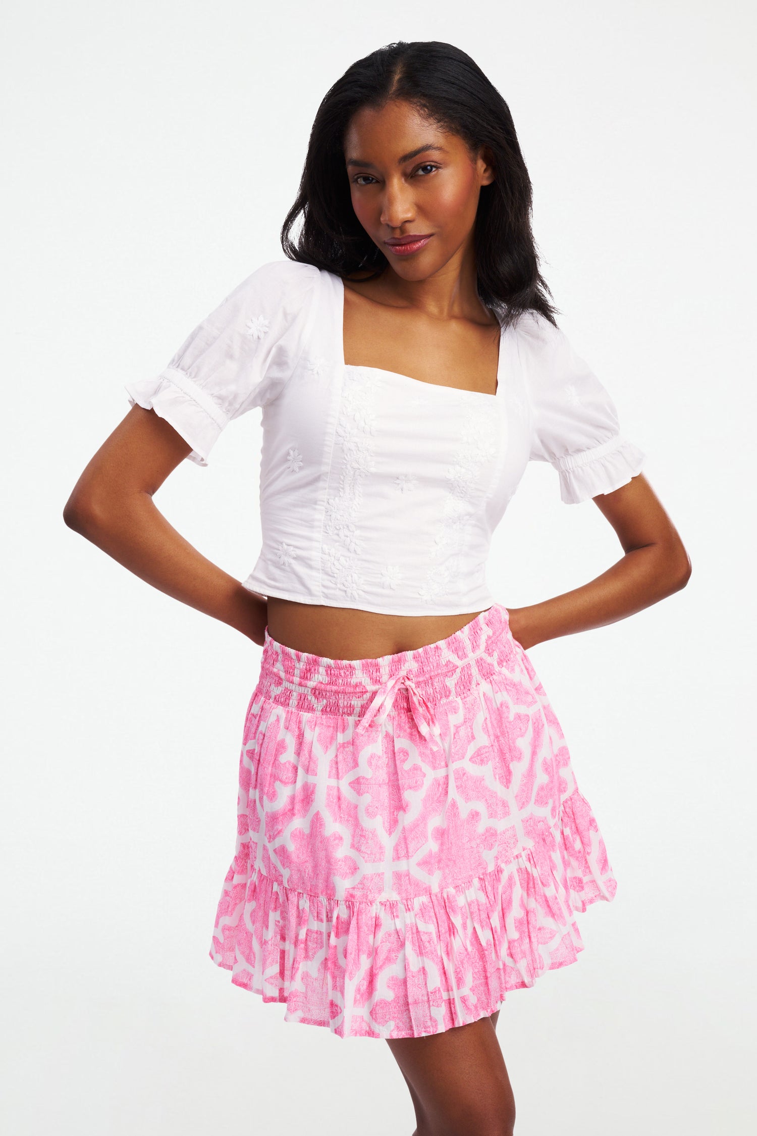 The Peyton Skirt is one of those "throw it on and go" pieces you can wear anywhere: the pool, the patio, lunch with friends, you name it. It slips on easily with a comfy smocked waistband and cheeky ruffled hem.