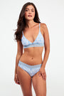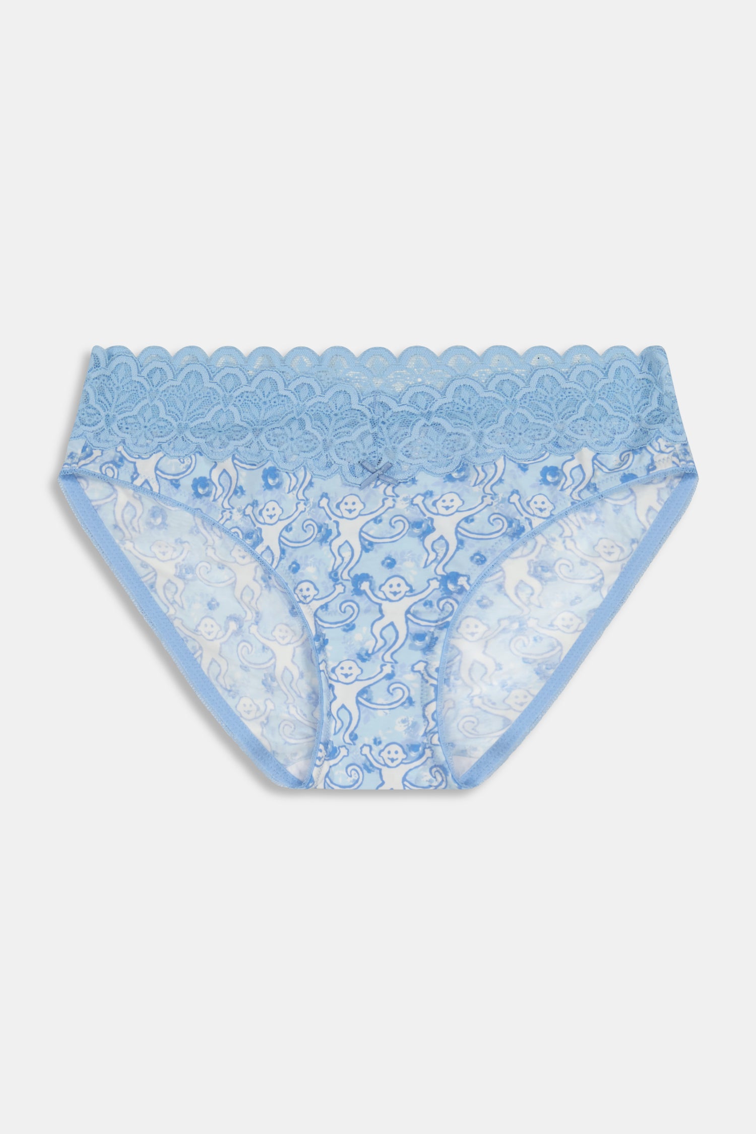 A forever classic, bikini underwear is both cute and comfortable for everyday wear. Pair the Waverly, a cotton bikini undie in a blue Monkey Rosette print, with the matching Perry Cami.