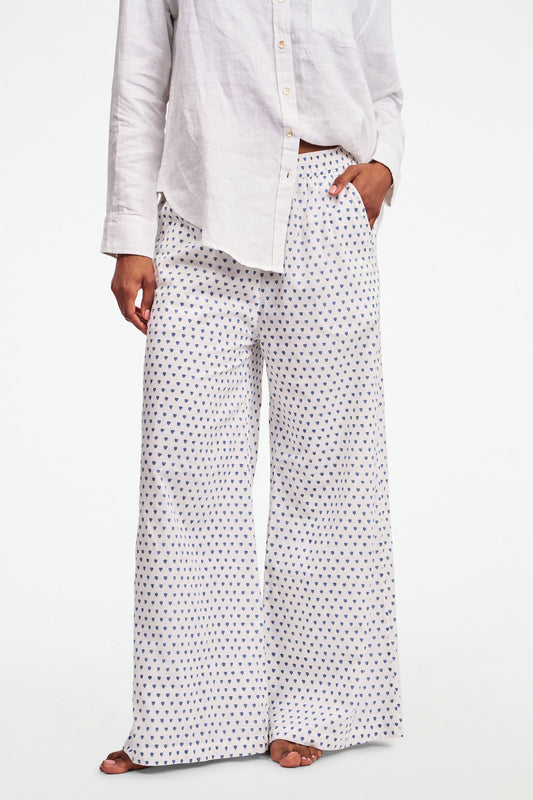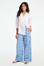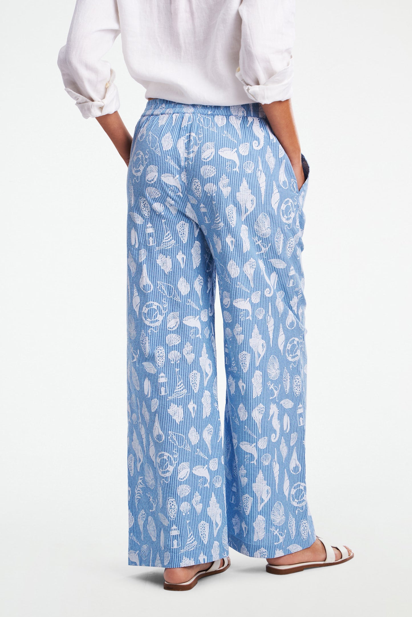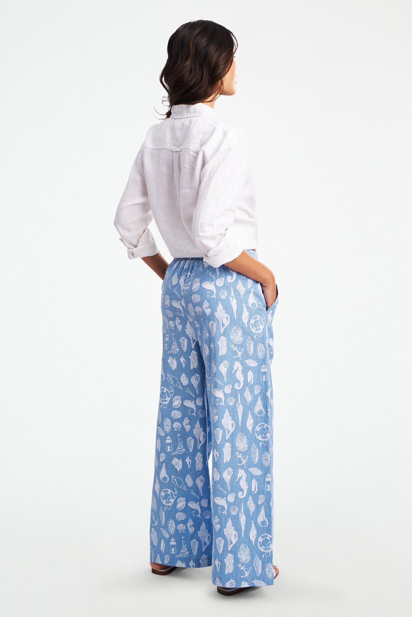 Nothing says summer vibes like loose, easy-going lounge pants, especially when they're seersucker! The Kaylee Pant gets a warm-weather upgrade in a stunning nautical blue color and Seaside Print pattern. The smocked waist keeps things comfy and chill.