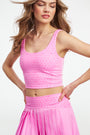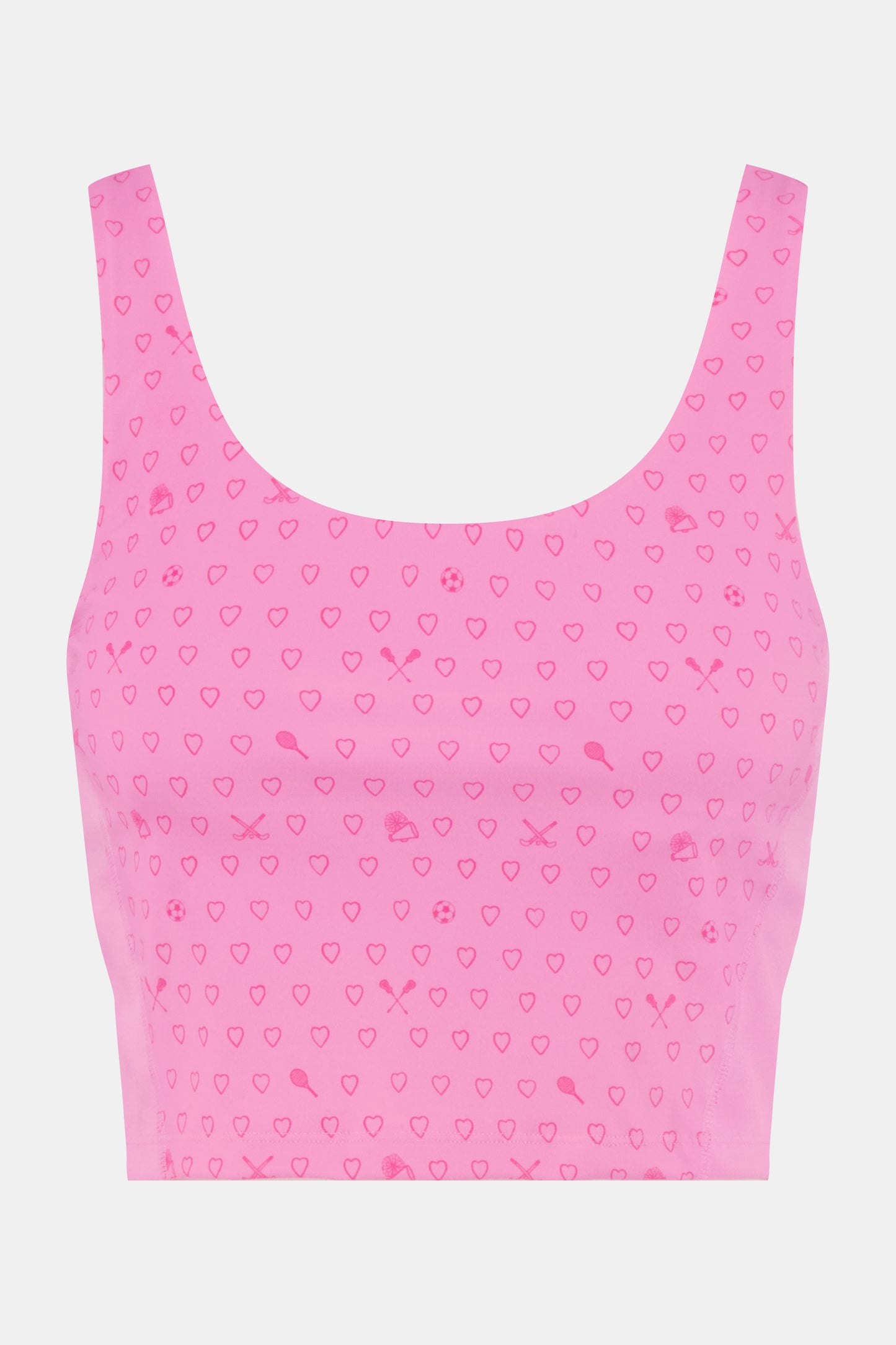 Pickleball, anyone? Hit the court looking pretty in pink in the Izzy Tank, a fitted sporty style with a subtle heart print and supportive shoulder straps. We love it with the matching Sabine Tennis Skirt.