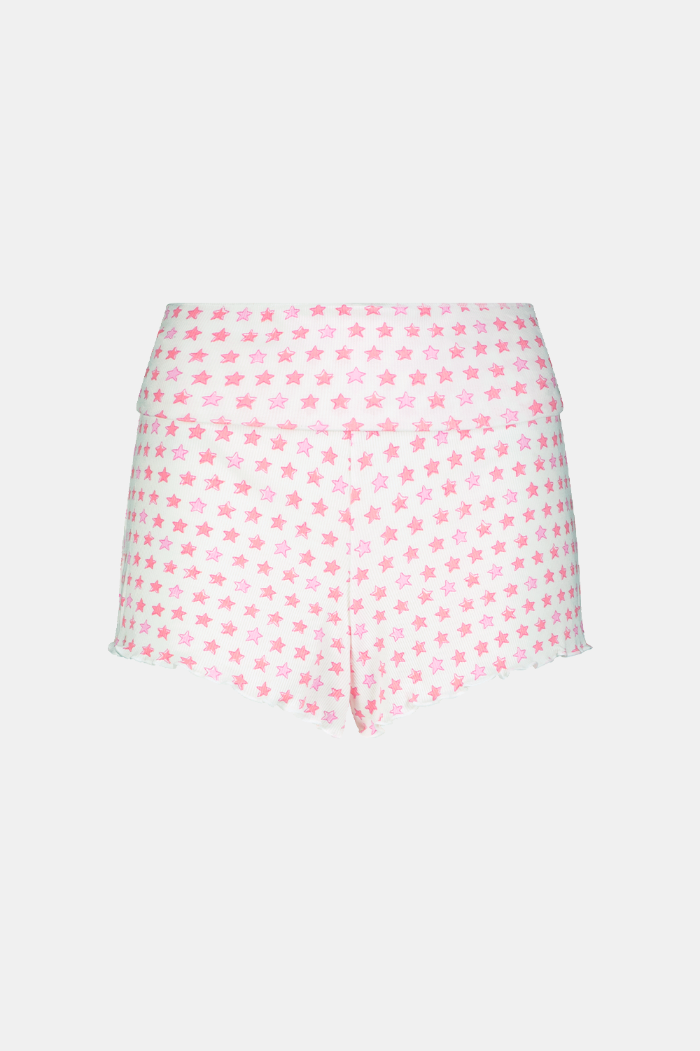 You're a star in the Ann Rollover Shortie, a cotton rib short-short with an adorable coral star print and cozy-cool fit. We love it with the matching Astor Henley Tank.