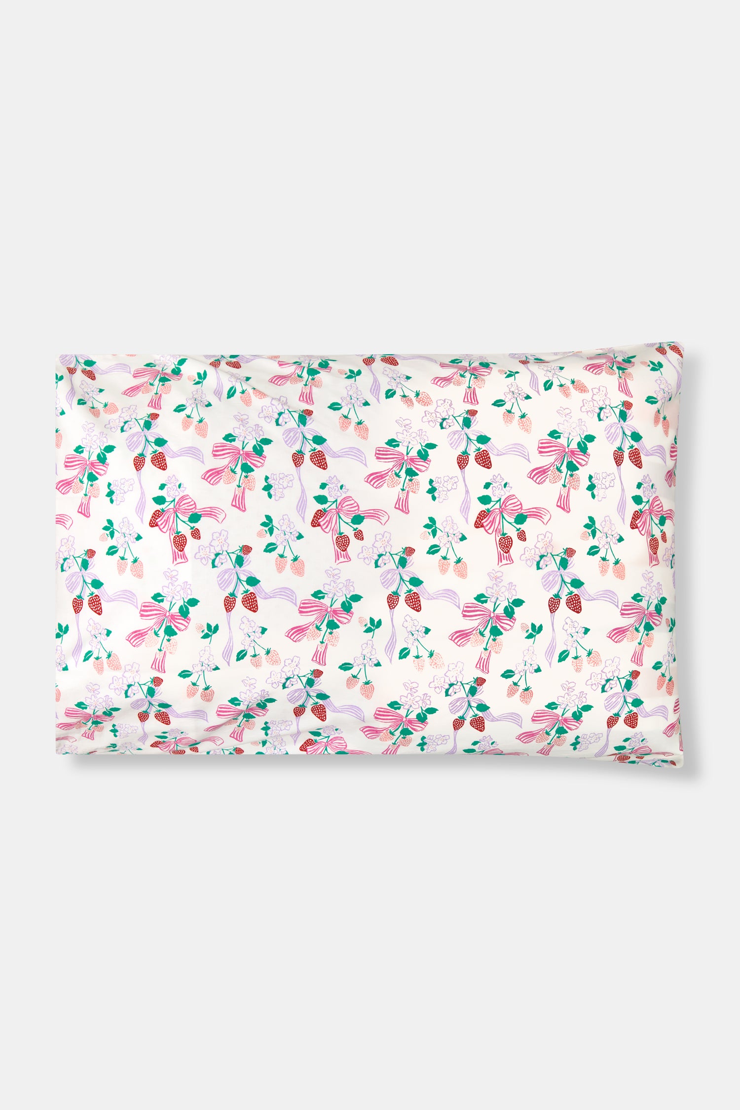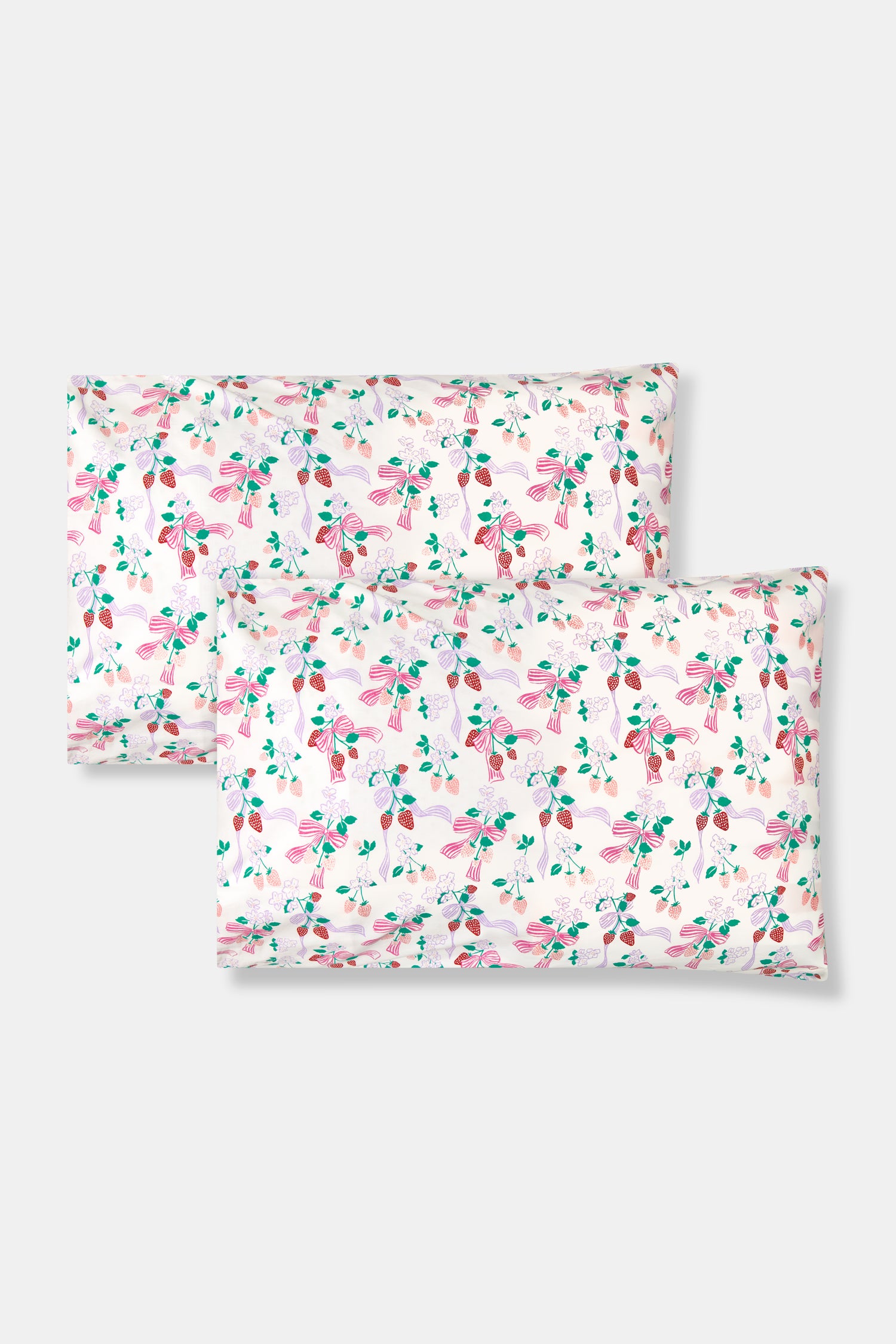 Elevate your beauty sleep with soft, 300-thread-count cotton pillowcases in a whimsical strawberry print.